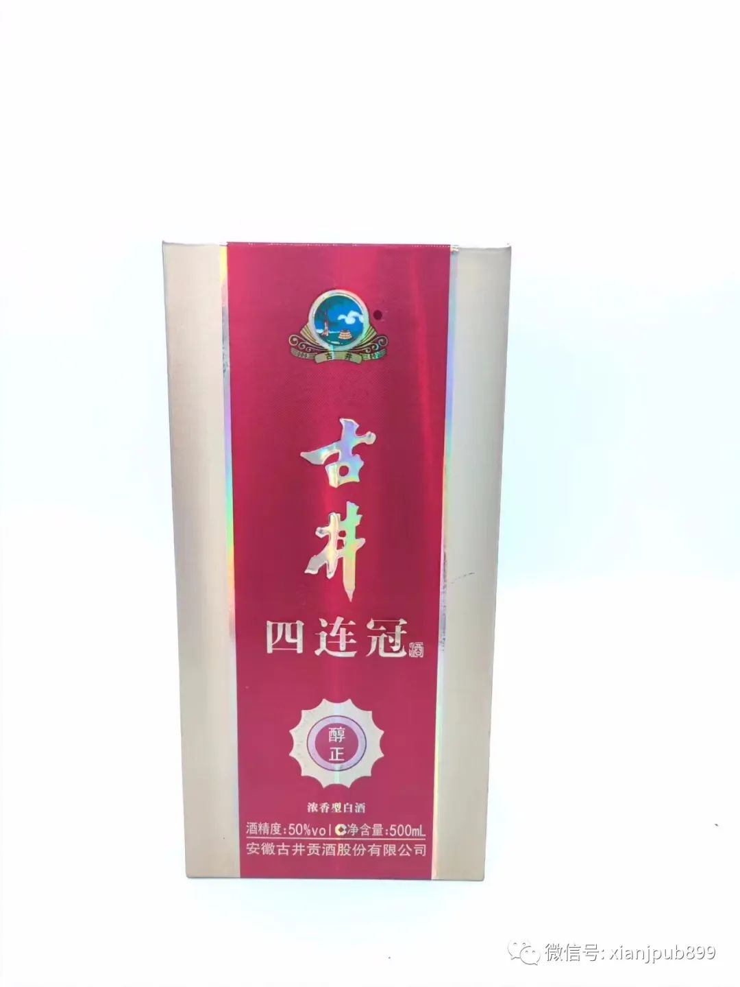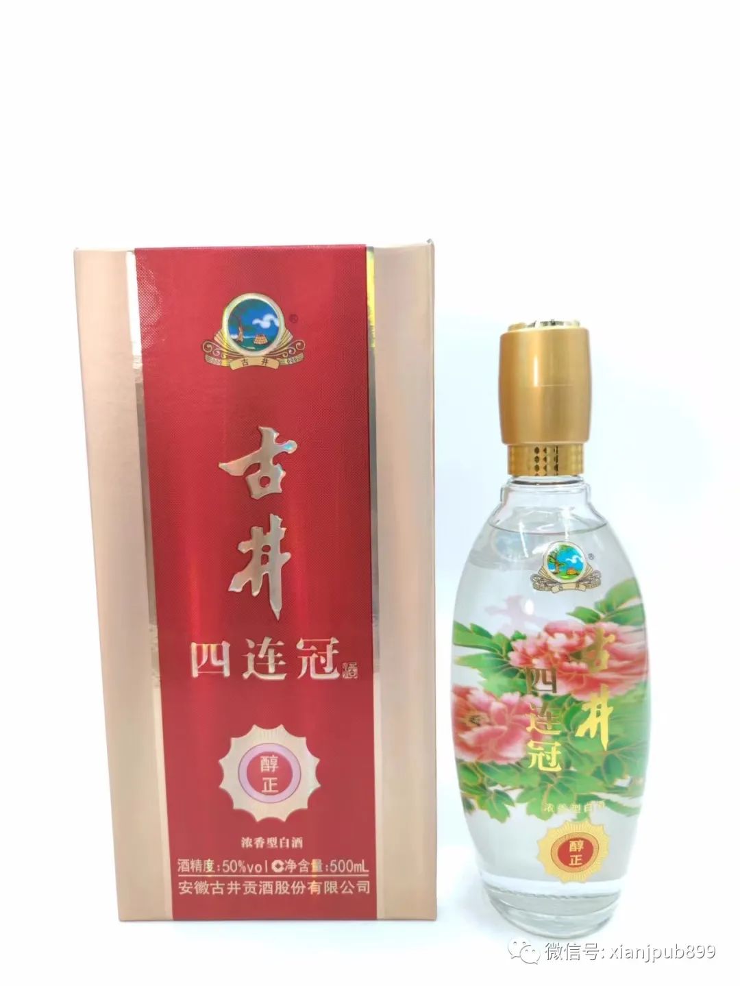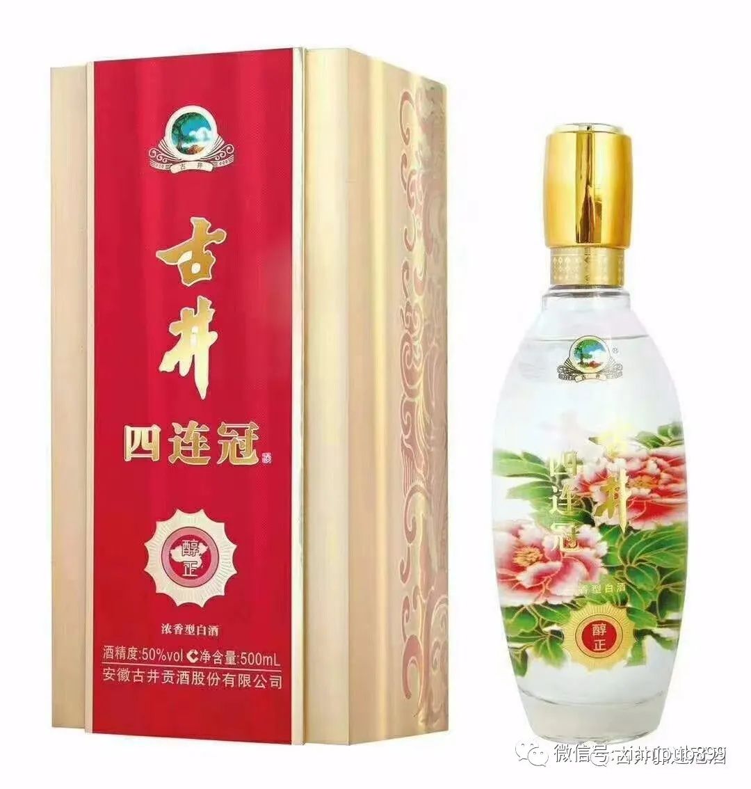因此,古井贡酒集团在推出浓香50度古井四连冠系列时,也是经过了深入市场调研和基于对古井贡酒品牌的延伸影响力考虑,沿承了名酒平民化价格路线,以此回报广大酒民朋友。前面【仙聚酒阁】曾对古井四连冠系列之浓香50度醇绵(中国老八大名酒之一古井贡四连冠大曲浓香50度)、浓香50度醇爽(高朋满座喜相逢,酒逢知己古井贡之古井四连冠醇爽浓香)分别有过推荐,有兴趣的朋友可以点开回看了解,现在推荐的是古井四连冠系列之浓香50度醇正(下图为古井四连冠醇正图片)。