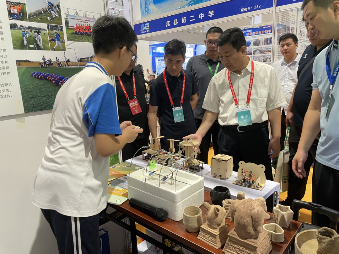 展会现场规模庞大、内容丰富。在全环境立德树人主题展区,我市作为地市代表之一设有独立展位,集中展示了我市在推动全环境立德树人方面的探索实践和取得的阶段性成果。在儿童青少年近视防控展区,我市4所学校参与展出,重点突出我市在近视防控科普宣教以及护眼灯改造等实践方面的经验成果。在中小学教育技术装备应用创新案例展区,我市8所学校充分利用展位空间,全方位、立体展示学校在应用教育技术装备方面取得的成果,3D陶泥打印、光伏发电、人工智能机器人、特色手工等元素亮点纷呈。经专家现场评审,共获特等奖1个,一等奖2个,二等奖5个。在中小学(幼儿园)自制教(玩教)具优秀作品展演展区,我市9件作品参加展演,数量居各地市之最。市、各区县领导到我市各展位一一观摩指导。