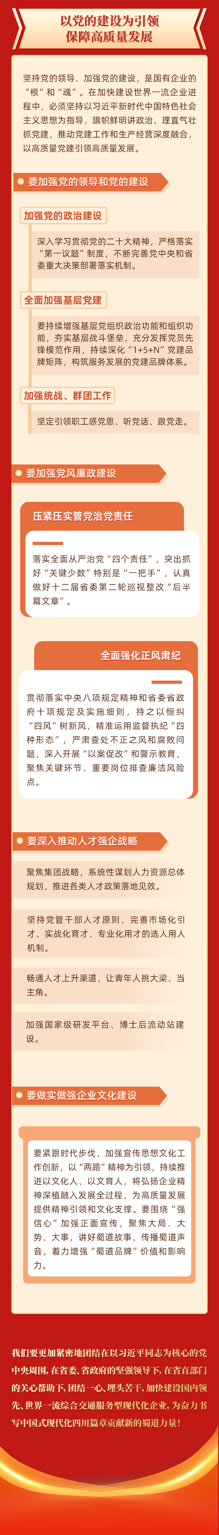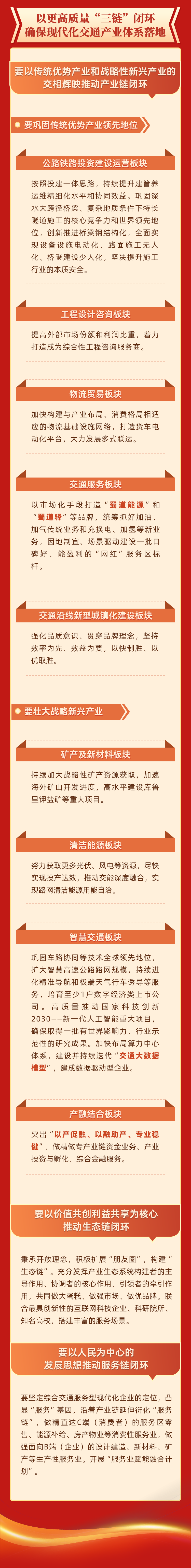 蜀道投资集团有限责任公司(以下简称“蜀道集团”)是四川省重组整合原四川交投集团和四川铁投集团新设合并组建的省属国有企业,业务涵盖公路铁路投资建设运营、相关多元产业、智慧交通、产融结合四大板块,锚定“加快建设国内领先、世界一流综合交通服务型现代化企业”这个战略愿景,以交通网、通信网、能源网、运输网、服务网“五网”融合为基础,以产业链、生态链、服务链“三链”闭环为核心,着力提升治理现代、协同整合、专业经营、创新引领、风险防控等五大能力,加快构建高质量的现代化交通产业体系,实现发展能级的量变、产业生态的质变、竞争力影响力的跃升。