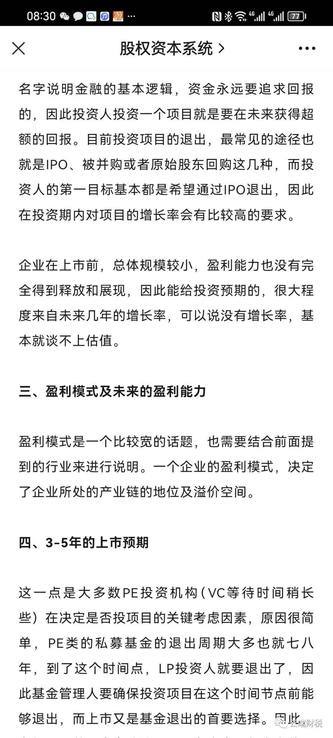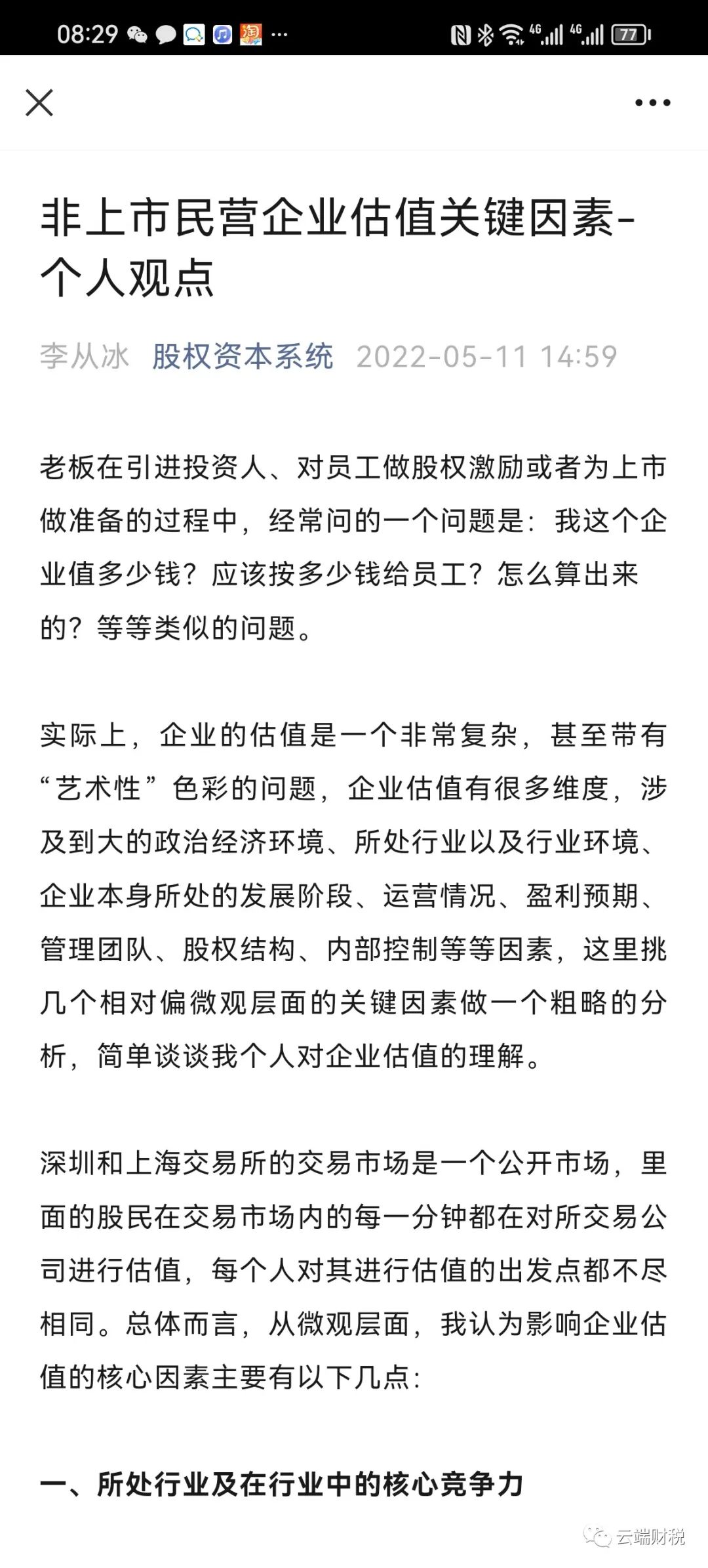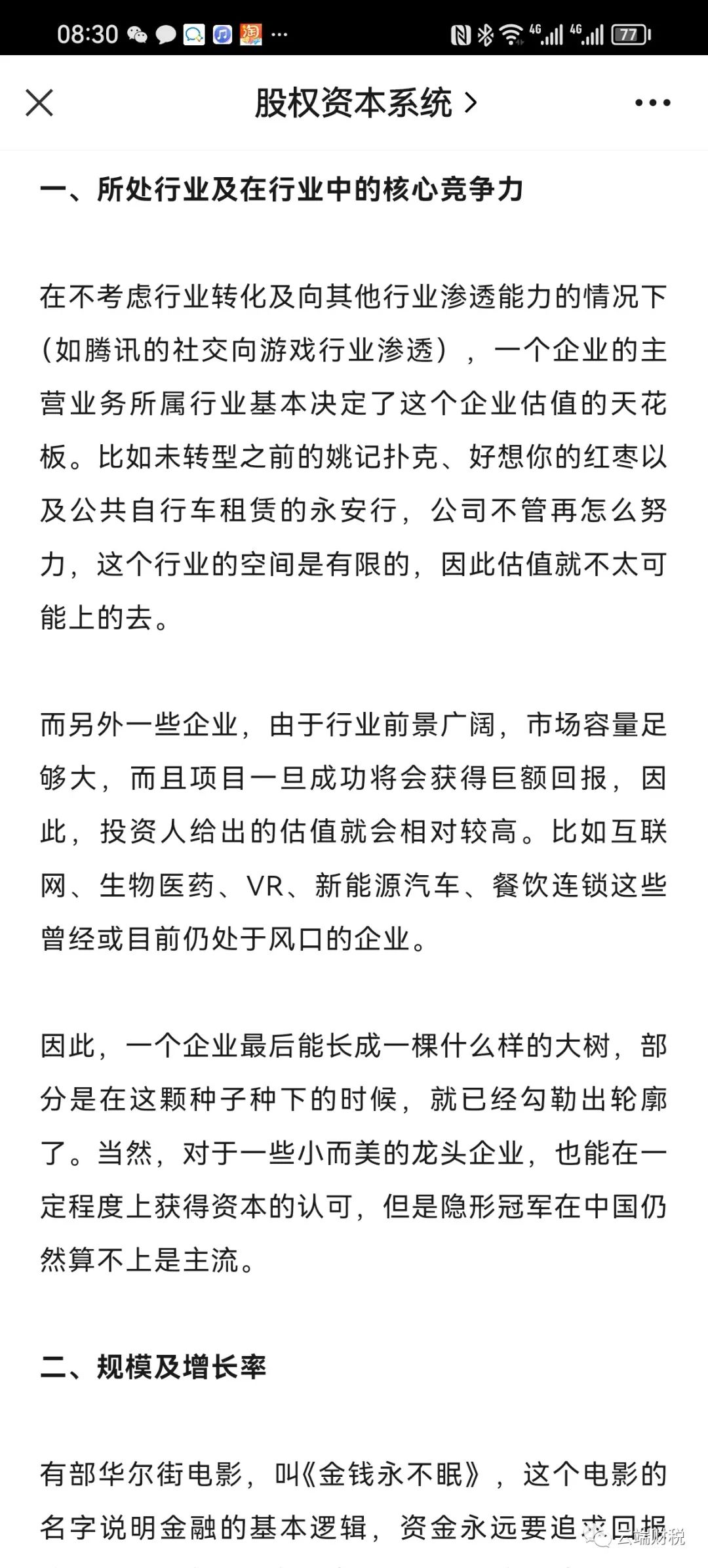【管理实务】非上市民营企业估值关键因素-个人观点