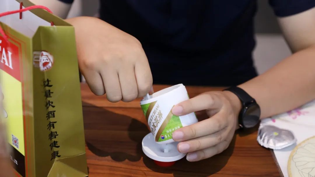 店内还为大家准备了消暑伏茶、茅台冰淇淋等,茅台冰淇淋新品让大家眼前一亮,其口感浓郁绵密、层层递进,浓醇风味让人欲罢不能!