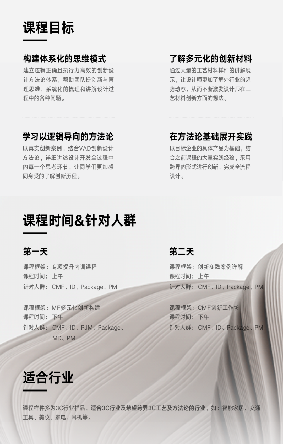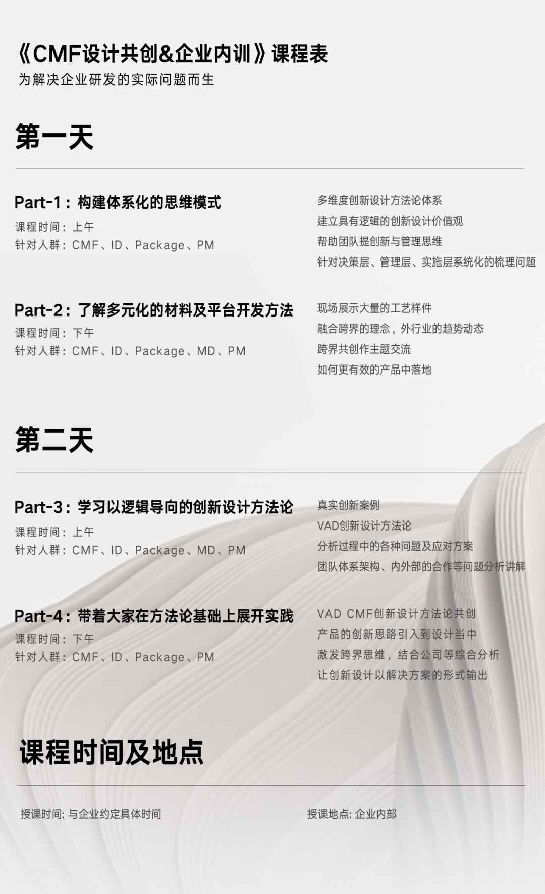 涟一CMF创新研究团队专注CMF的深度研究和实践,历经2年,终于打磨出这样一门课程——《CMF设计共创&企业内训》,为解决企业研发的实际问题而生。