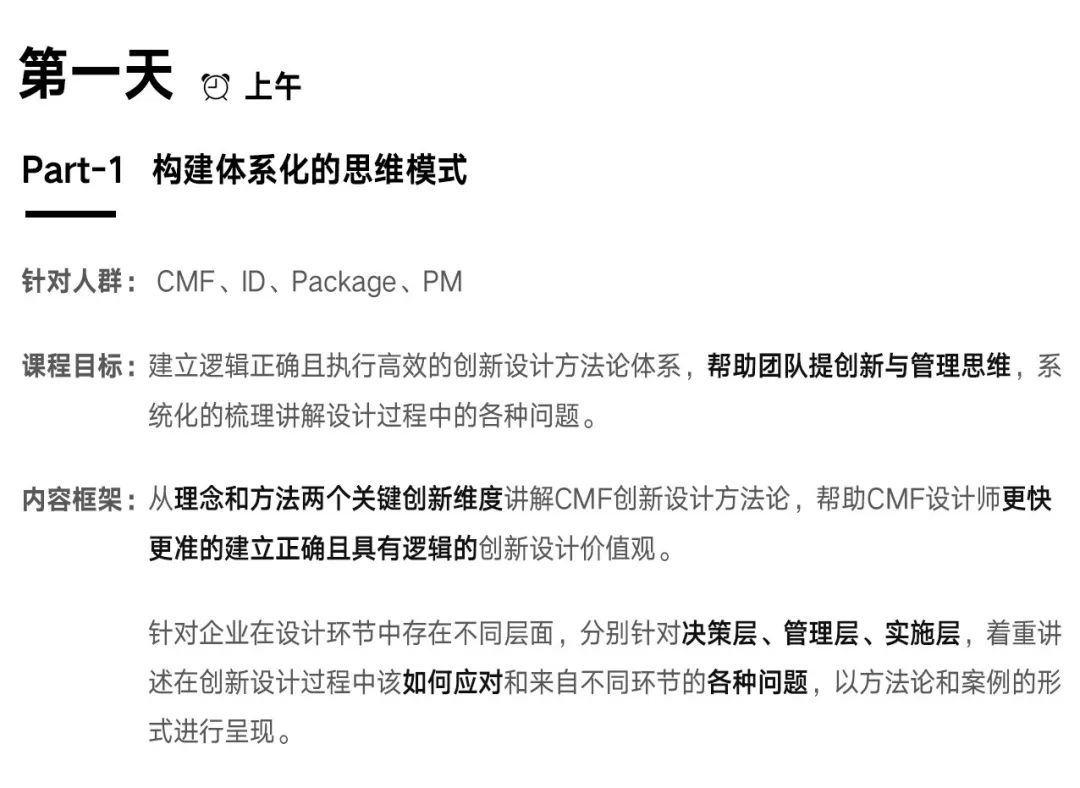 线下面授,一期为2天时间,在企业内部,以面对面交流沟通,现场解决大家的CMF疑问。