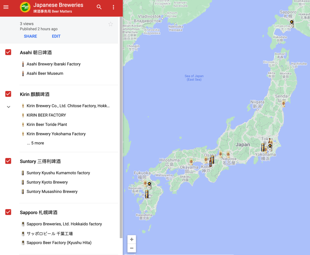 为了方便大家查询哪个酒厂在自己附近,我汇总了以上所有酒厂的地址信息,并将其标注在了Google Maps——