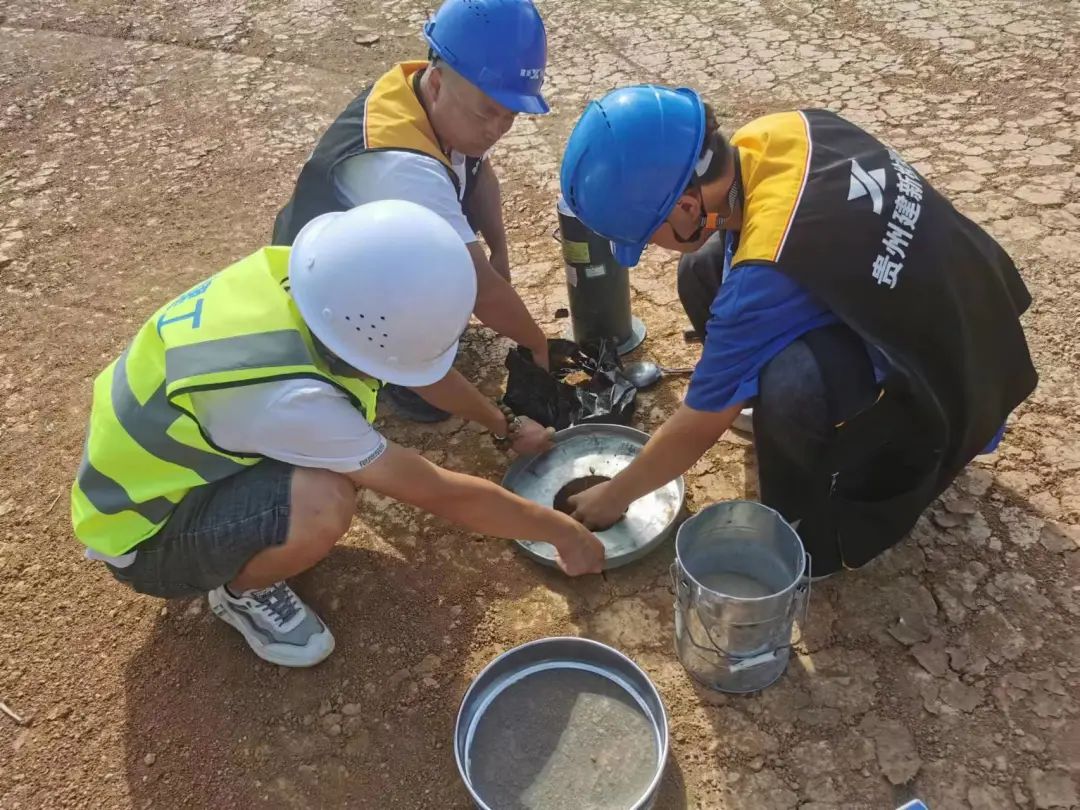7月17日,屠宰场建设项目建设单位邀请建新检测单位对施工现场土方回填区域做(灌砂法)压实度测定。