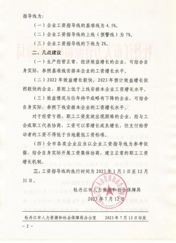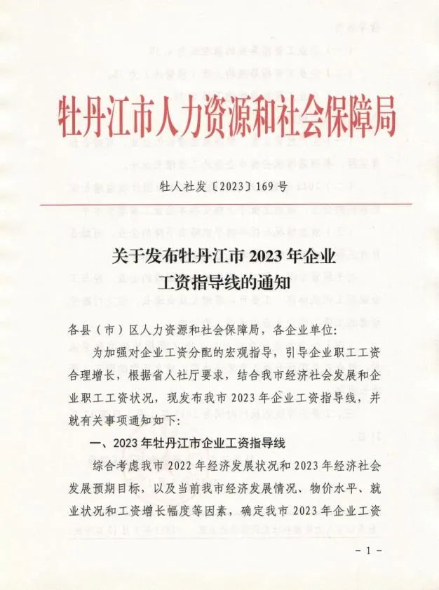 关于发布牡丹江市2023年企业工资指导线的通知