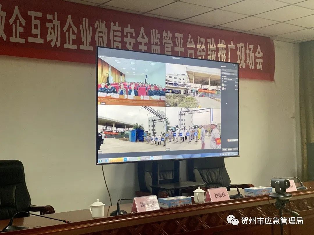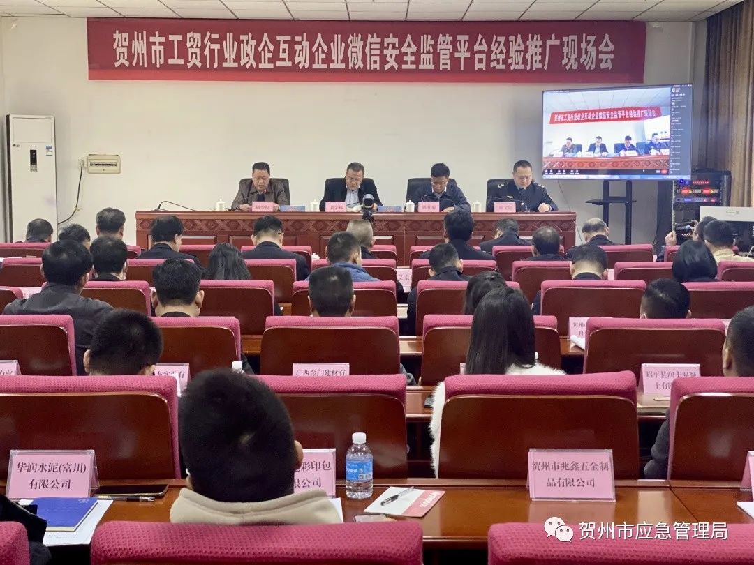 贺州市应急管理局在平桂区召开全市工贸行业政企互动企业微信安全监管平台经验推广现场会。