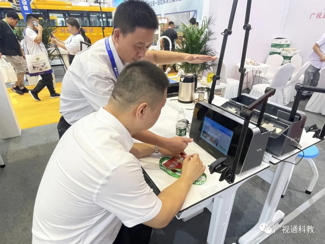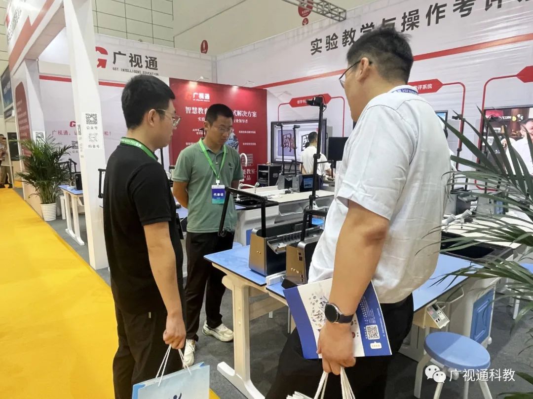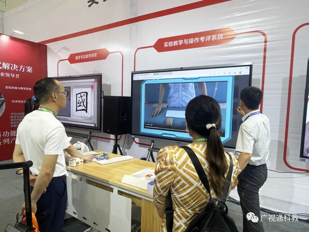 本次展会,广视通带来了实验教学与操作考评系统、智能理化生实验室、智慧书法教室等产品亮相,吸引了众多嘉宾驻足参观,并对我们的方案和产品给予了充分的肯定。