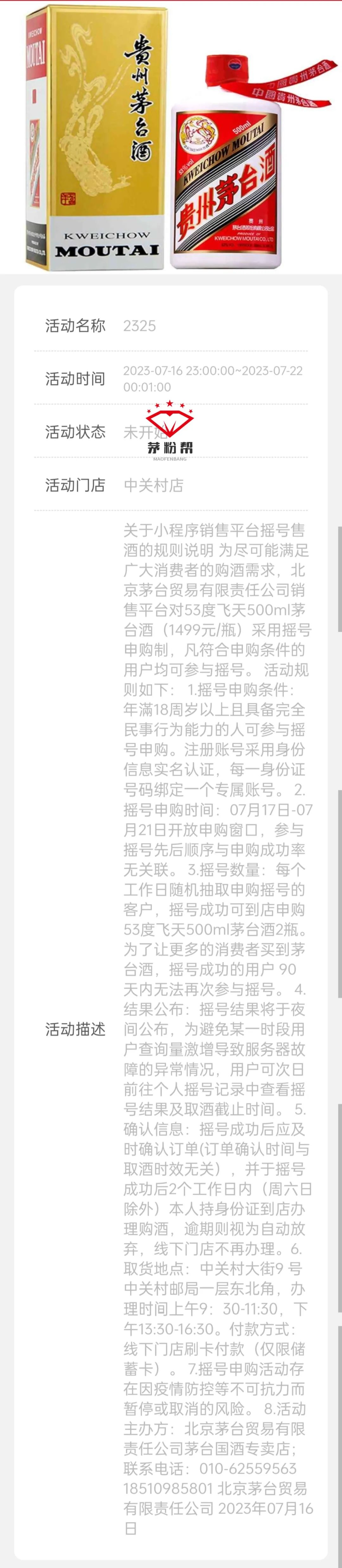 ①、扫码关注茅粉帮、每天更新撸茅线报及预约通道!