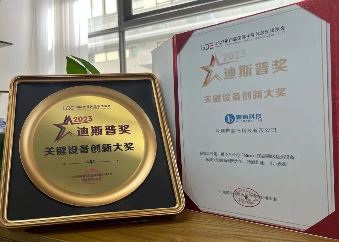 2023年7月17日-19日,为期三天的UDE 2023 第四届国际半导体显示博览会(简称:“UDE 2023”)在深圳会展中心召开。本次大会是由中国电子视像行业协会权威指导,是中国半导体显示产业重要的年度盛事。大会聚焦Mini/Micro LED、OLED、激光显示、硅基微显示等新型显示,展示了半导体显示上下游相关的装备、材料等最新技术和前沿产品。共有来自89个国家及地区的数万名观众参加盛会,数十场专业论坛也如期召开。壹倍科技携Micro/Mini LED晶圆级检测设备亮相此次展会,展会期间凭借其优异的产品性能,已成功量产的α-INSPEC M1070p 设备填补了中国制造企业在Micro LED晶圆级PL光致发光检测设备领域的空白,荣获UDE 迪斯普奖关键设备创新大奖。展会期间,召开了Mini/Micro LED 显示半年度大会,大会以行业领袖主题演讲环节开启,旨在通过产业生态共建发布、市场回顾与展望、标准建设探讨,来共同呈现Mini/Micro产业阶段性创新应用成果。深圳市壹倍科技有限公司CEO 高锦龙博士受邀向参会嘉宾分享了“Micro LED晶圆级巨量检测技术与应用”的主题演讲。演讲中高博士总结了Micro LED领域的技术发展路线,并提到了在产业发展中遇到的良率控制和后续的转移、修复成本等问题。向行业伙伴分享了壹倍科技具有Mini LED量产性的检测方案:通过PL和AOI进行全检,可检出芯片的发光性能和外观缺陷,再通过EL辅助抽检电性能和电性不良;同时分享了壹倍科技产品在Micro LED晶圆级巨量检测技术“超高速无损、高稳定性和重复性、亚微米级分辨率”的主要特点,可满足不同终端产业的需求。在Mini/Micro LED显示半年度大会上,《Micro LED显示屏光学性能技术规范 车载常规 》和《MicroLED显示屏光学性能技术规范 车载透明》两项团体标准的制定工作由天马新型显示技术研究院(厦门)有限公司和天马微电子股份有限公司牵头正式启动,壹倍科技作为标准立项工作组的主要成员出席了启动会议,为推动行业技术水平、规范行业竞争、维护用户权益贡献力量。7月19日,展会圆满结束,特别感谢业内伙伴对壹倍科技的支持与关注。精彩仍在继续,壹倍科技即将参展 8月29-31日上海DIC EXPO国际显示技术及应用创新展,诚邀业内伙伴届时上海再相聚!