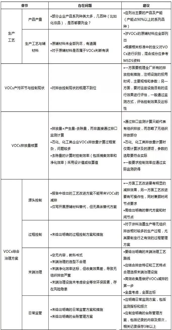 通过组织开展方案评审、现场核查、人员访谈、专家验收等工作,结合编辑者实际评审经验,,对照国家和地方相关政策要求,充分梳理企业在VOCs整治过程中遇到的问题,详细如下: