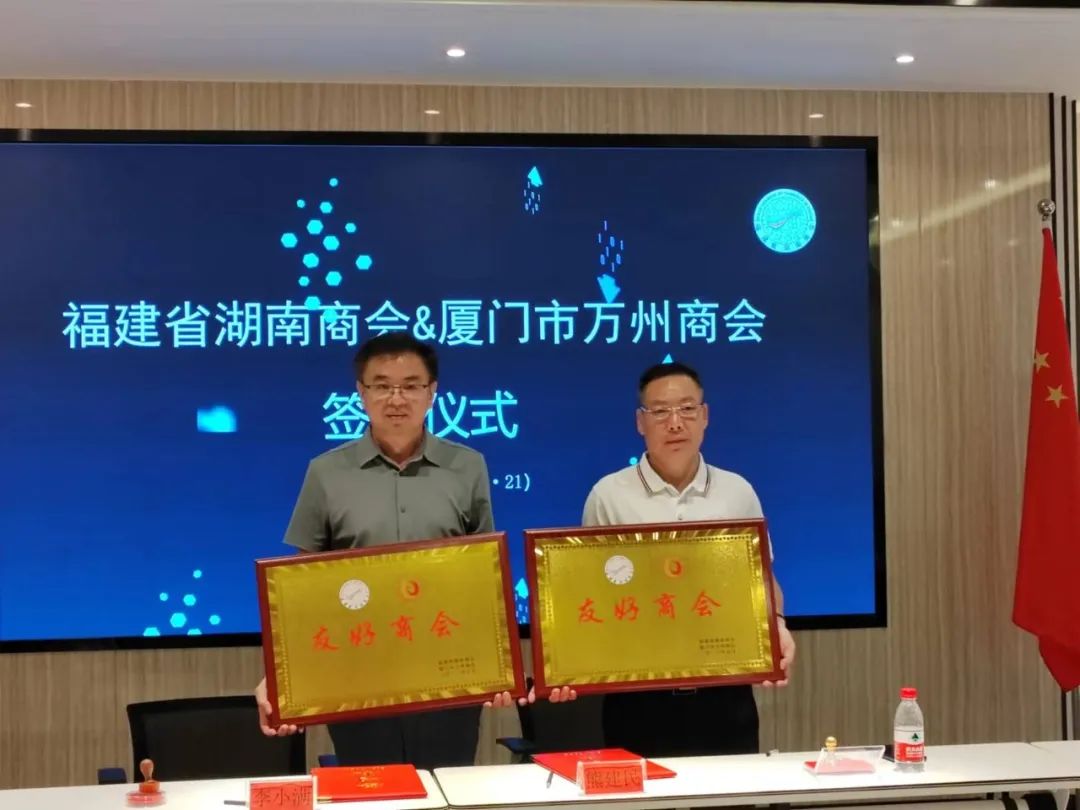 随后,熊建民会长和李小满执行会长分别代表两家商会签订了战略合作协议,并相互授予“友好商会”牌匾。此次活动在热烈、友好的气氛中圆满结束。