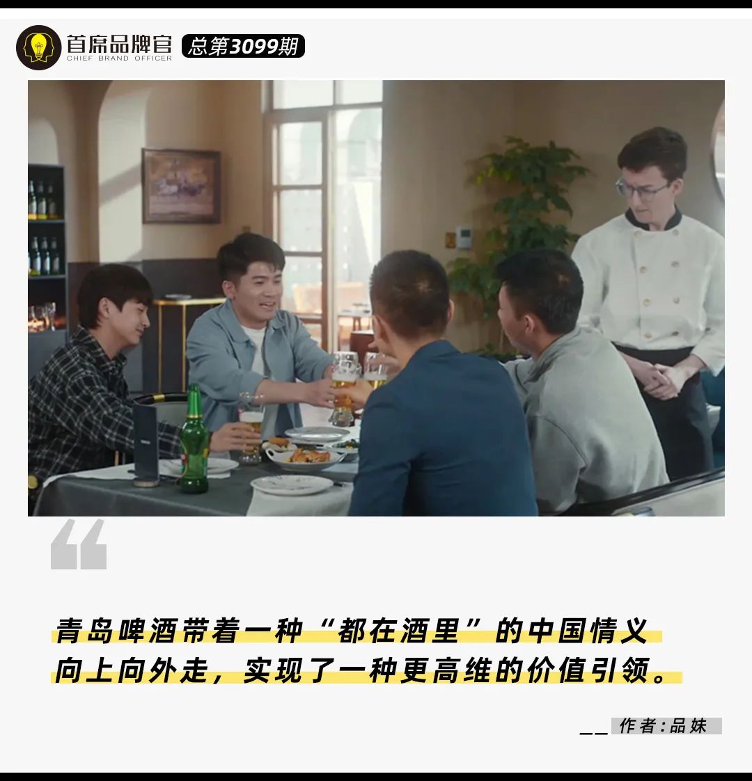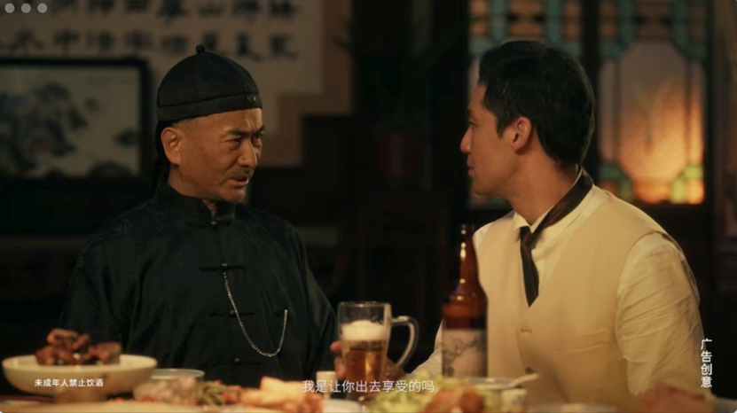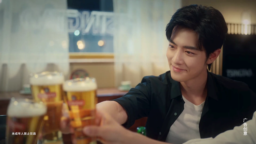 而来到21世纪的当下,青岛啤酒又成为了年轻人的一种日常生活方式。正如肖战饰演的酒馆老板而言,“喝酒喝的是一种交情、一种心情、一种人情“。这三种情义最终指向的是“中国情”,那种最本真的情义。所以在贾导平实、生活下的镜头语言下,青岛啤酒描绘了国人成长的集体记忆,直勾勾地往每个人心里都埋下了一颗共情的种子。 2 跳出抽象的标签,以具体的年轻视角传递当代中国情义在这三支微电影中,压轴出场的《盛名》无疑是最出圈的一部。我想,这不仅得益于青年演员肖战的个人影响力,或许更是因为,当肖战以观察者的角色,感受中国酒桌上独有的仪式感和厚重文化,并能让外国友人也被这种“都在酒里”的华流文化所感染时,这恰好与国内年轻人的文化自信,民族自豪热潮相呼应。