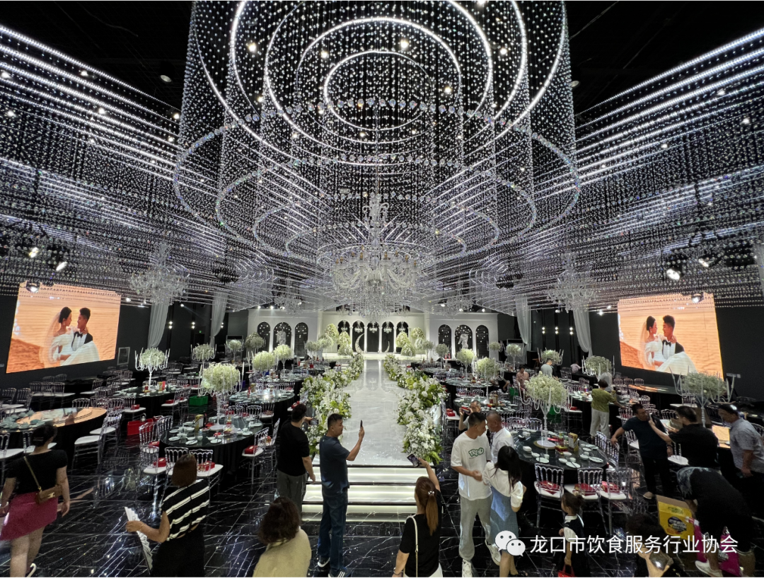 在莱州协会监事长杨宝龙引领下,参观花开嫁日大酒店婚宴大厅。花开嫁日大酒店正在举办的婚礼有5场,婚宴大厅的精美精致程度让大家叹为观止拍手称赞。