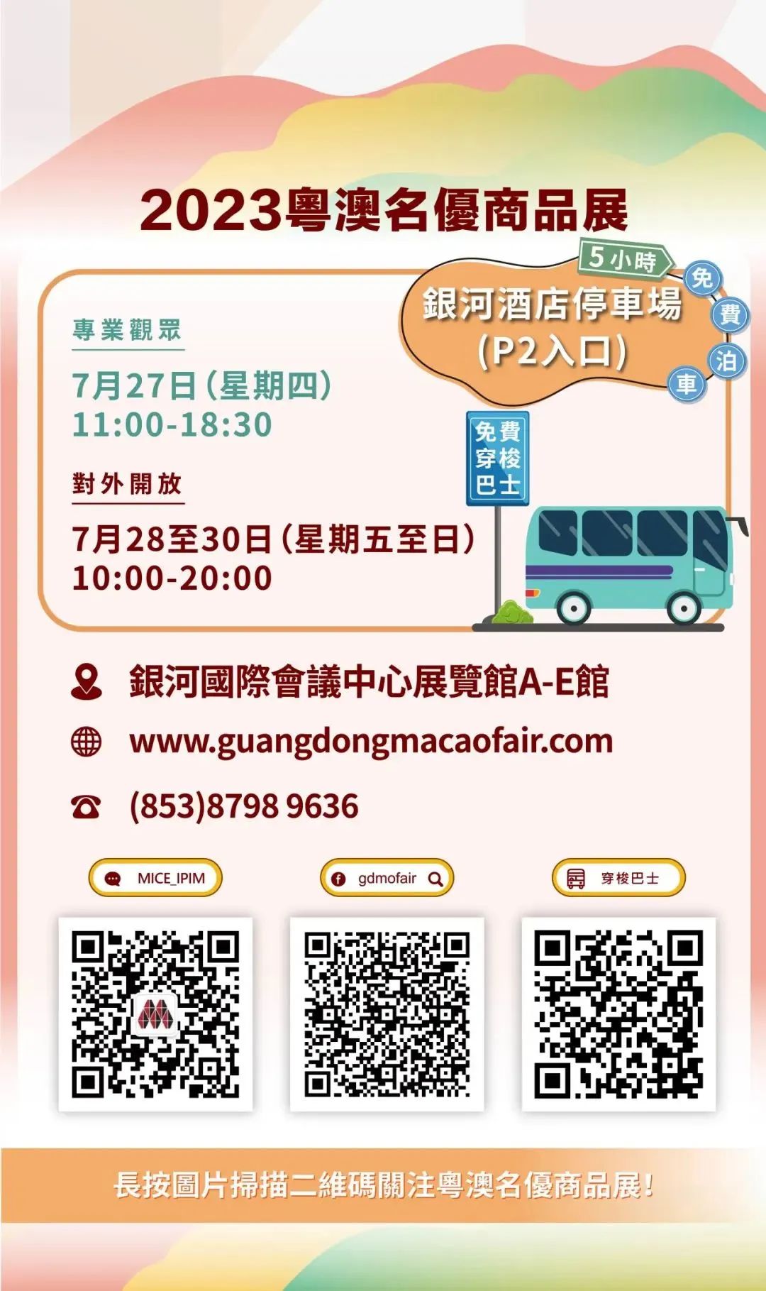 “2023粤澳名优商品展”将以“全新场地、传薪名品、存新机遇”的升级面貌在银河国际会议中心展览馆A-E馆举行,继续延伸去年广受欢迎的“预制菜”主题,配合四大产业,汇聚澳门、广东省、“一带一路”沿线国家和地区超过400家企业现场展销,为市民旅客提供消闲娱乐好去处,同时推动两地经贸交流。