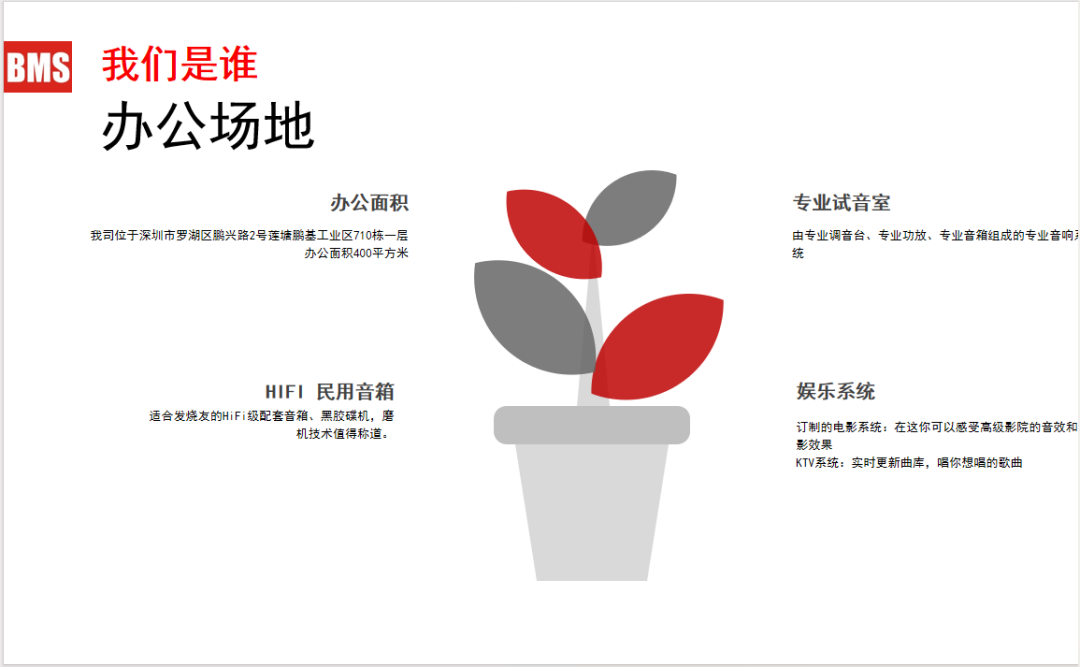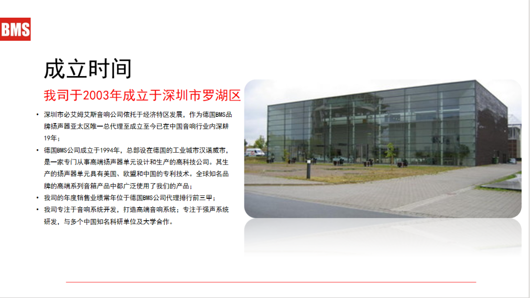 下午14:30,必艾姆艾斯廖福林总经理热情接待了参访人员并在他的试音厅与大家进行了座谈交流,参访人员进行了自我介绍,分享了各自企业经营范围、运行模式、管理经验,互相交流、相得益彰。廖总同时给大家分享了必艾姆艾斯发展状况、自身经历及未来发展方向,他说在深圳打拼了近30年,一直专业做音响,在深圳第一份工作的公司叫环球琴行,在这里了解了当时全世界著名音响品牌的性能,并开始系统的自学声学这门复杂的综合性边缘学科,一边工作一边学习,相继考取了初级和中级录音师证书,并在2009年考取了高级录音师证书。现在主要从事的业务有两大块:一是德国BMS,从2003一直做它亚太地区的代理,连续5年销量第一;二是自己注册的牌子Audio LiniPRo,专业做市政工程投标的音响。近两年工作重心转移到政府音响项目上,比如学校的会议室、礼堂、音乐教室等都需要的音响设备。如有政府资源的可以一起合作。执行会长张海道提出,商会自成立以来,从第一届发现问题,到第二届解决问题,接下来第三届将考虑发展的问题。商会一直持续在做组织活动让会员之间熟悉起来,未来将围绕“愿景、使命、价值观”进行宣导,助力商会成为一个有价值的平台,秘书处将每个会员进行行业分类,并划分上下游企业,同类行业上下游企业一起定点走访,定点邀约,有共同话题、各取所需,合作发展,打造每次走访产生不一样的意义和价值。另外会员遇到跟商业有关的问题,商会也将尽全力全方位的给予赋能与助力,体现商会的使命和责任。企业简介:深圳市必艾姆艾斯音响设备有限公司