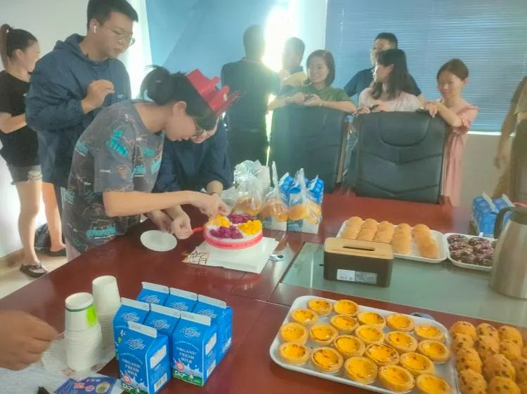 此次活动准备了蛋糕、公司自产鲜牛奶、各式面包等,现场还为10位寿星送上蛋糕卡。在这喜庆的节日、欢聚的时刻,一起唱生日歌,共同祝愿寿星们在事业和生活上一帆风顺,前景美好,好运连连!寿星代表也发表了感言,表示感谢公司给予的平台,祝愿寿星身体健康、工作顺利、家庭幸福美满,祝福公司的发展更上一层楼,公司的明天更加灿烂辉煌。