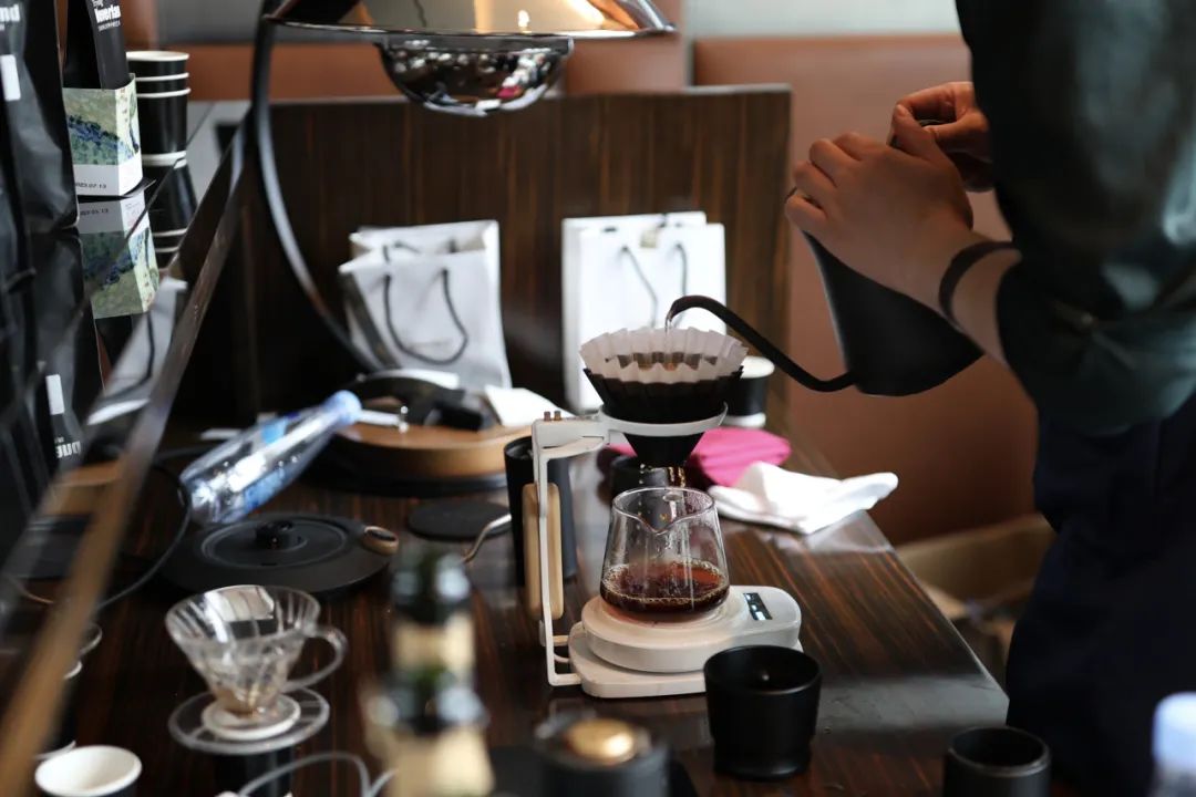 工作人员现场手冲