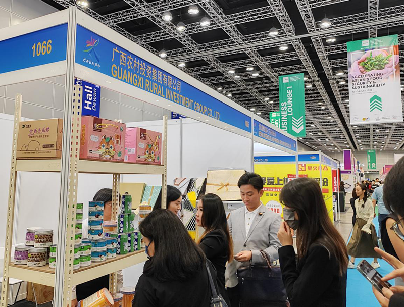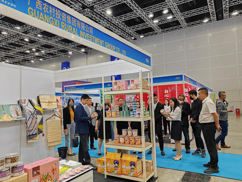 马来西亚当地商会负责人和采购商对广西农投产品产生浓厚兴趣,纷纷在展位前品鉴并表达合作意向。