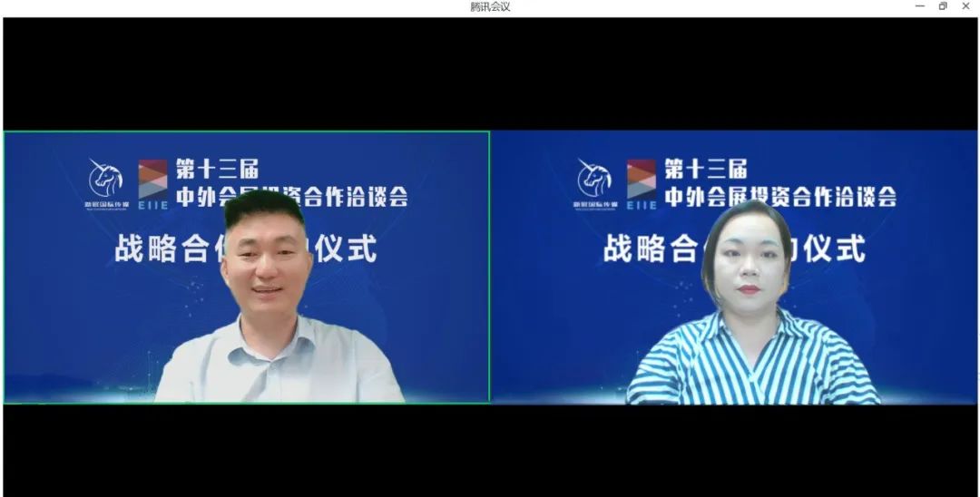 7月24日,北京新展国际传媒有限公司与北京信镜瀛科技有限公司就第十三届中外会展投资合作洽谈会的合作举行线上战略合作签约仪式。双方商定,北京信镜瀛科技有限公司将成为第十三届中外会展投资合作洽谈会小程序合作单位。