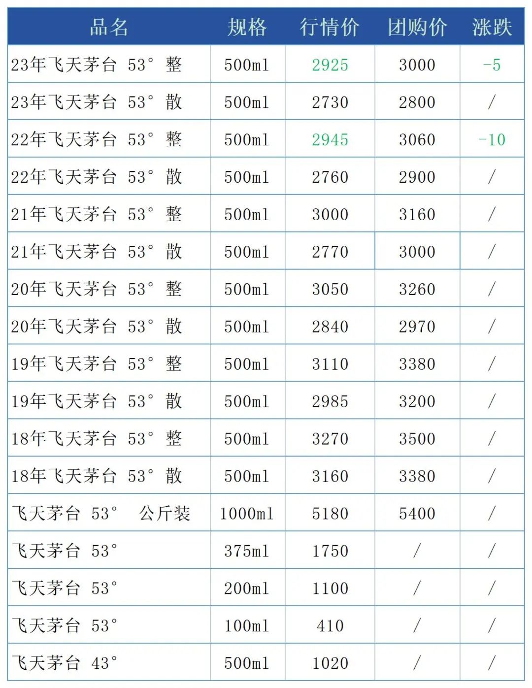 飞天小幅下跌,每日名酒报价2023年7月24日