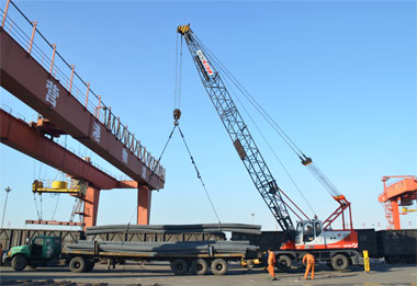 QLY系列轮胎式起重机主要用于大型港口、码头、车站、货场等场所的件杂货和散货的装卸作业,也可以进行集装箱装卸和对船作业。所有产品均可用柴油动力,外接电源动力,充电电池动力。我公司生产的大型轮胎起重机(15米幅度吊重55吨)可在内河码头完全替代门机作业同时可以行驶到后场兼顾后场作业,价格比门机便宜很多。