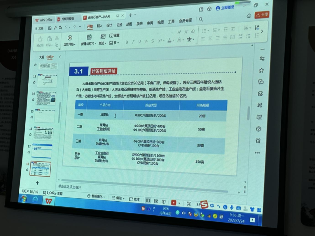 考察组就培育金刚石/钻石产业化项目展开座谈,洛阳顿立机械有限公司详细介绍了培育金刚石/钻石产业化项目的简介、场地要求、投资计划、资金来源及需协调解决的事项等情况,与会人员就项目的用地、可行性、相关优惠政策等方面进行了沟通交流。会上,美岭集团总经理苏清泉指出,培育金刚石/钻石产业具备一定的市场发展潜力,洛阳顿立机械有限公司团队技术相对成熟,有一定的合作空间。