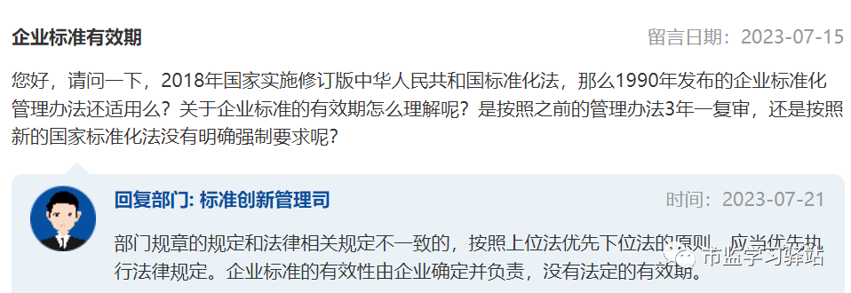 问:您好,请问一下,2018年国家实施修订版中华人民共和国标准化法,那么1990年发布的企业标准化管理办法还适用么?关于企业标准的有效期怎么理解呢?是按照之前的管理办法3年一复审,还是按照新的国家标准化法没有明确强制要求呢?