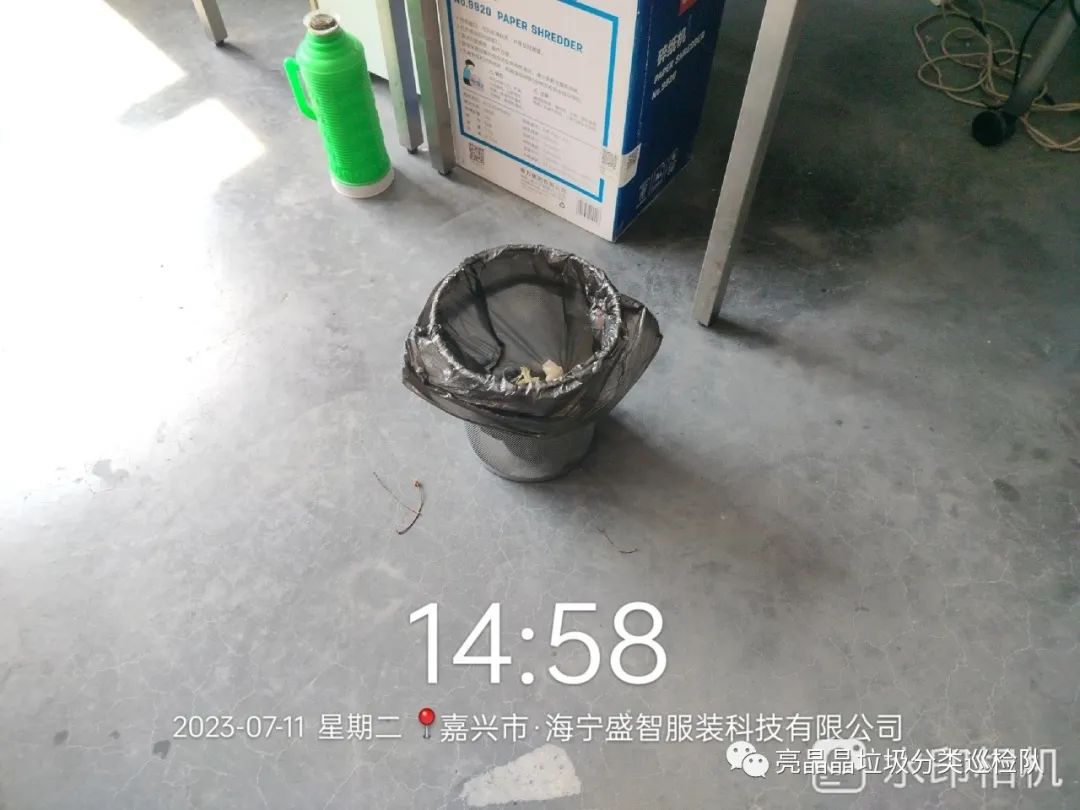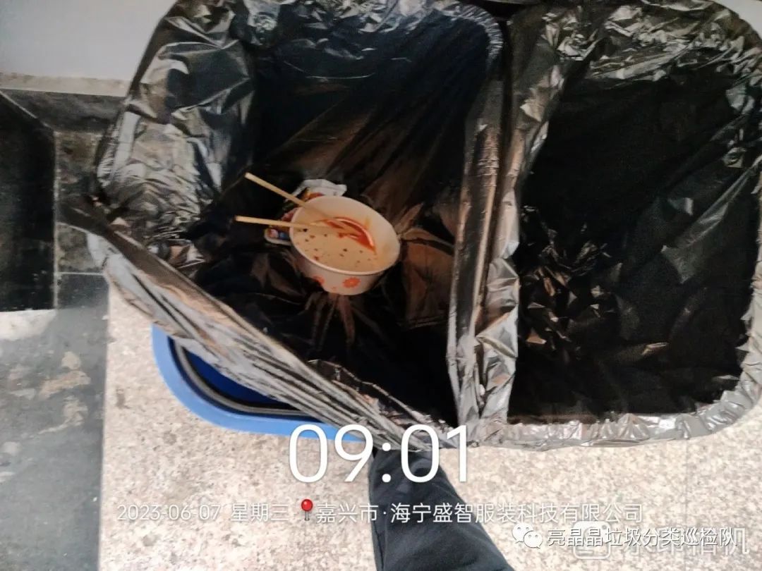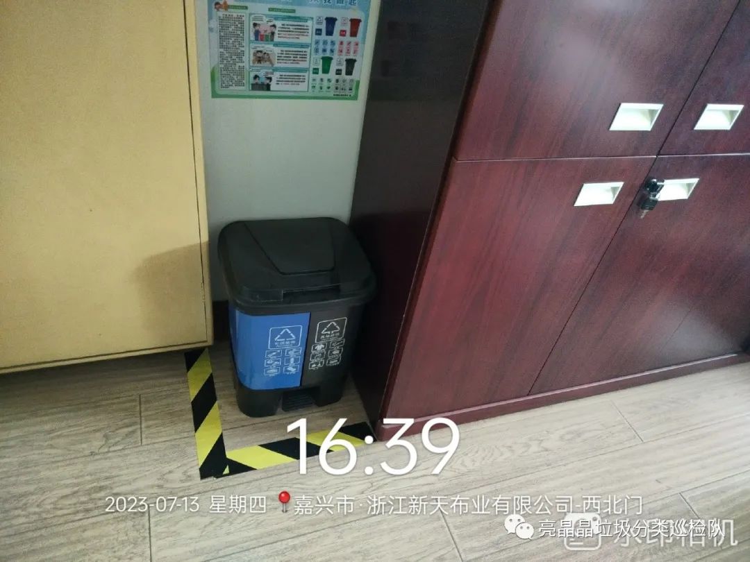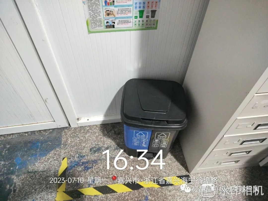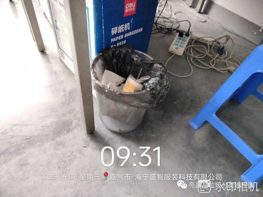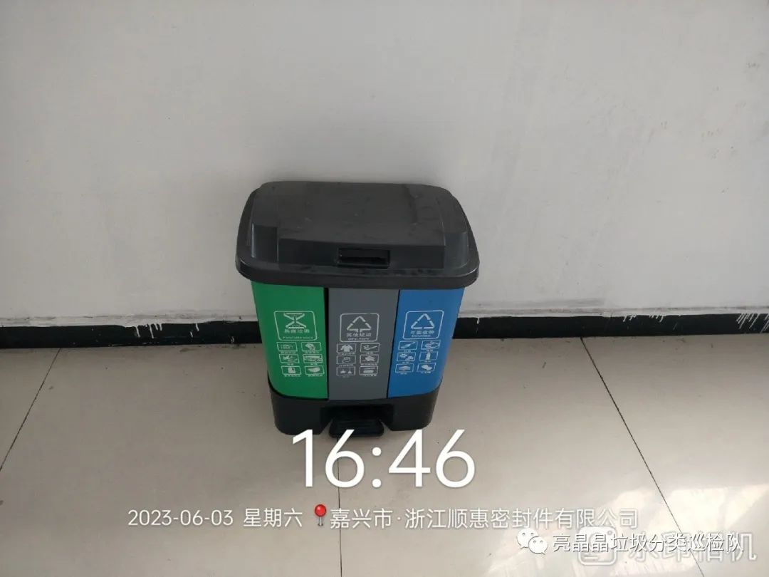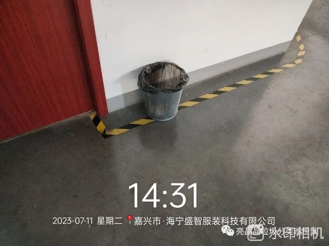 该企业上月检查到公共区域桶脏、混放,办公区域以及食堂区域无划线,本月去检查,混放桶脏问题已改善,办公区域也进行了划线,唯独食堂区域的分类桶还未划线,望该企业再接再厉。