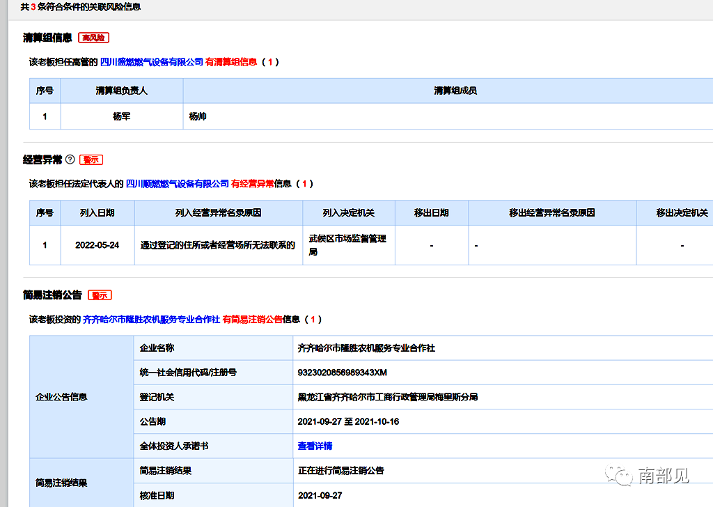 通过“爱企查”得知,该公司注册地为成都武侯区,目前因“通过登记的住所或者经营场所无法联系的”原因已列入“经营异常”