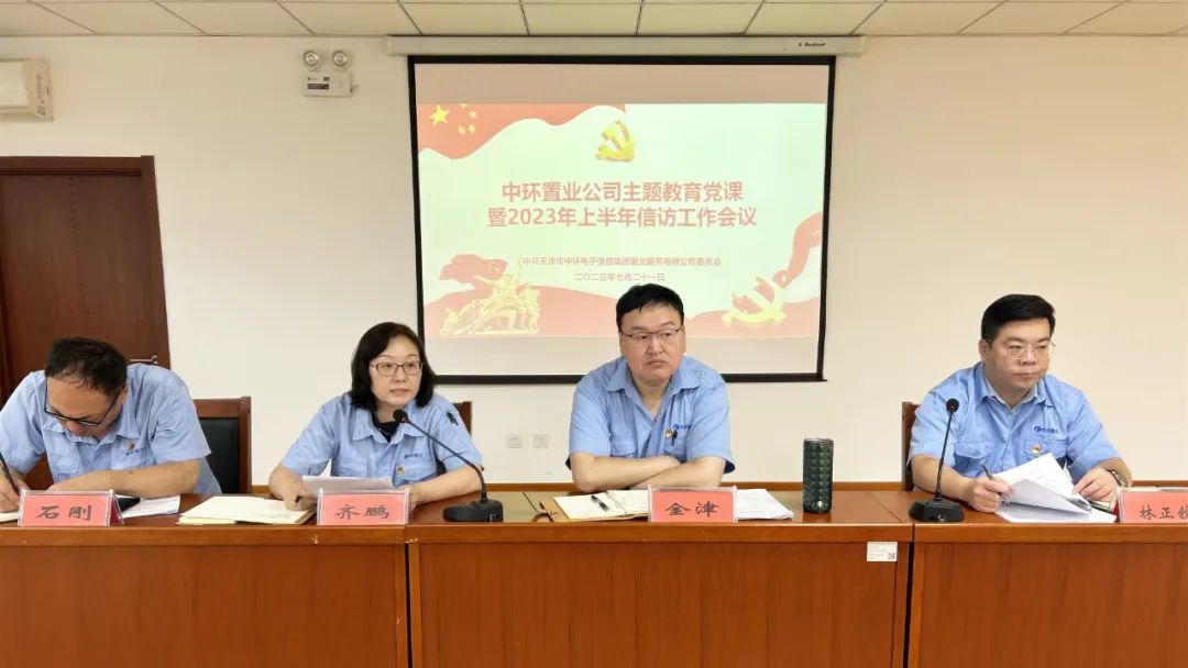 2023年7月21日上午,中环置业公司组织召开2023年上半年信访工作会。中环置业公司党委书记、董事长金津,党委副书记、经理齐鹏出席会议并讲话,工会主席林正钦主持会议。会议学习传达了国资委相关会议精神。托管中心、仪表集团、广播器材等三家单位围绕上半年信访工作逐一进行汇报。
