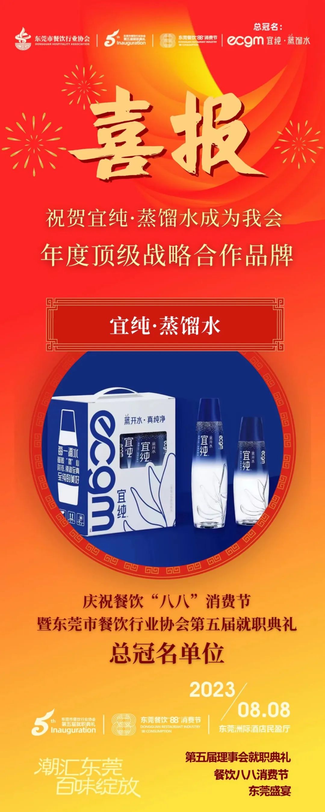 近日,东莞市餐饮行业协会与宜纯·蒸馏水确定了年度顶级战略合作品牌关系。