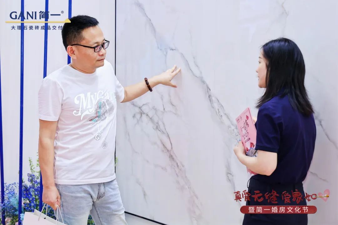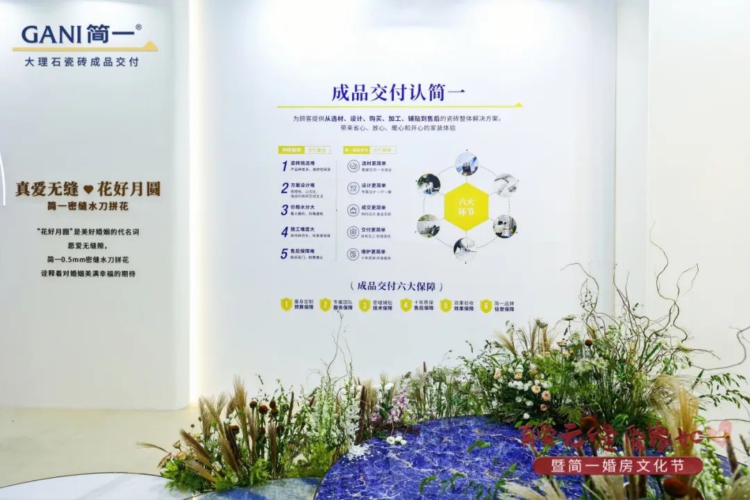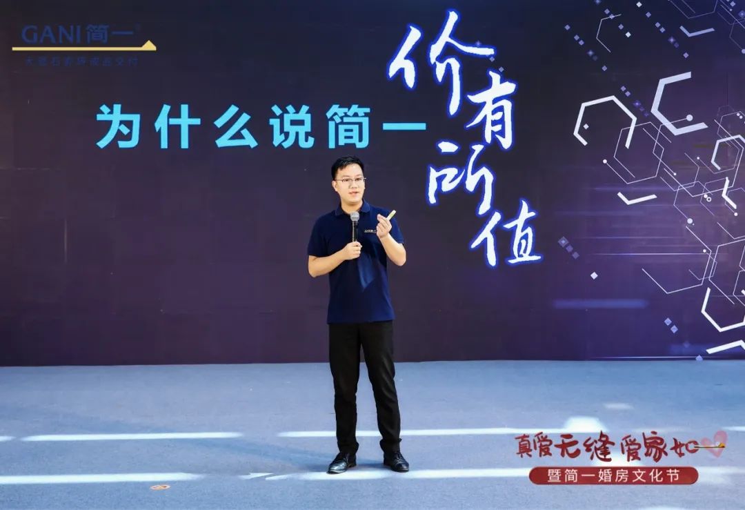 在婚博会活动现场,简一集团陈杰龙从技术、服务、用户、社责四大板块带来简一美好家价值体系分享。家是理性和感性的结合体,基于功能和情感价值的需求,简一希望带给消费者不仅仅是一块大理石瓷砖,更是美好家的价值交付,做用户值得信赖的美好生活陪伴者!