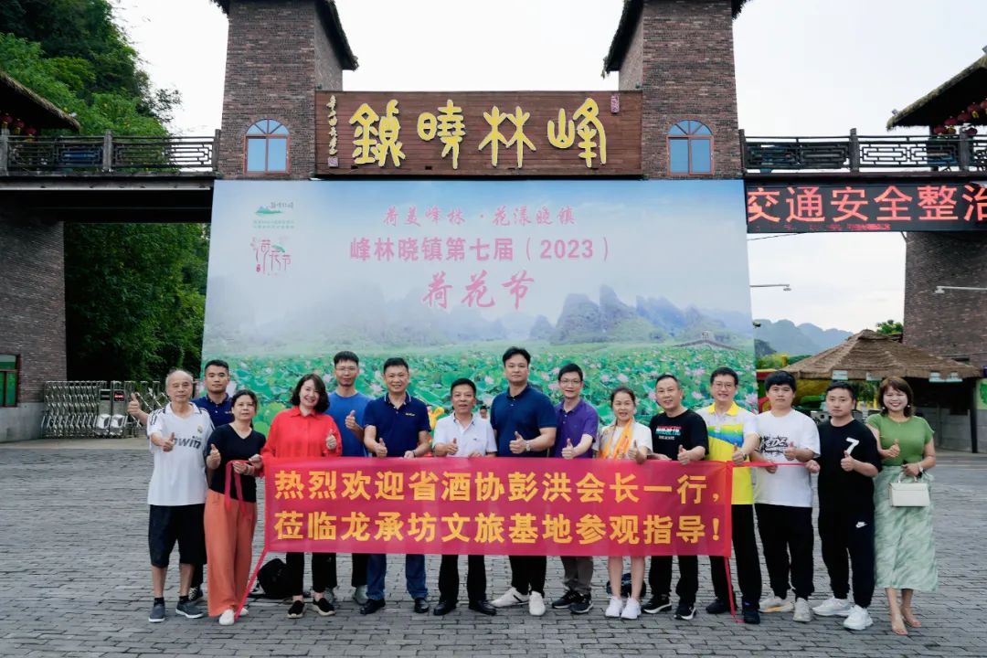 2023年7月19日,在广东省酒类行业协会彭会长的带领下,协会骨干一行莅临龙承坊酒业。龙承坊领导班子进行热情接待和精心安排了广东清远4A峰林晓镇、洞天仙境酒文化文旅配套路线,让彭会长及协会各骨干对龙承坊酒业有更深更全面的了解。