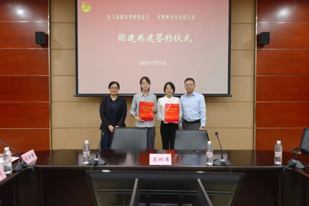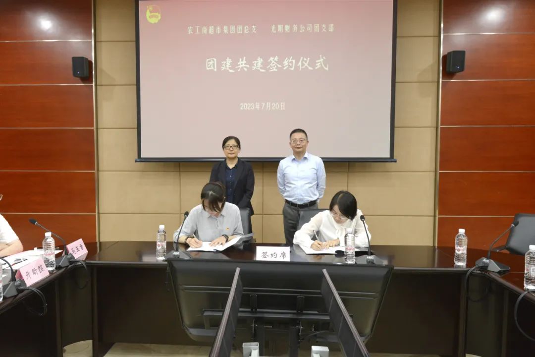 农超集团团总支与财务公司团支部在双方领导的见证下,共同签署结对共建协议。农超集团团总支书记孟欣、财务公司团支部书记刘丹萍分别就两家企业的产业布局、企业文化等内容进行了分享,并介绍了各自团组织的基本情况。