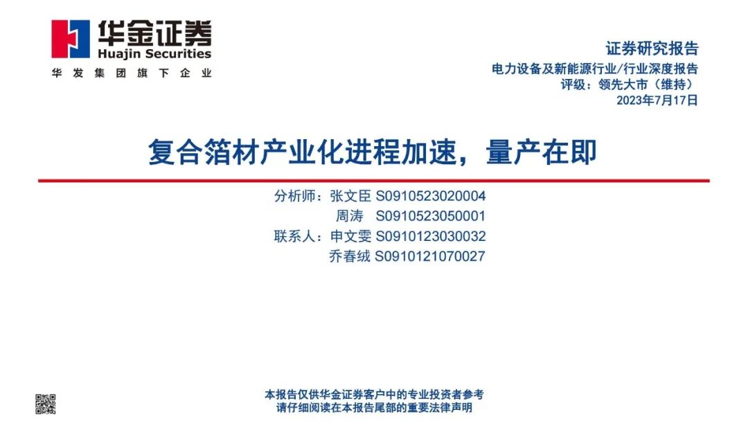 关注我们,后台回复“202307254”就可以获取《华金证券:电力设备及新能源行业深度报告》(完整版) 的全文下载链接。