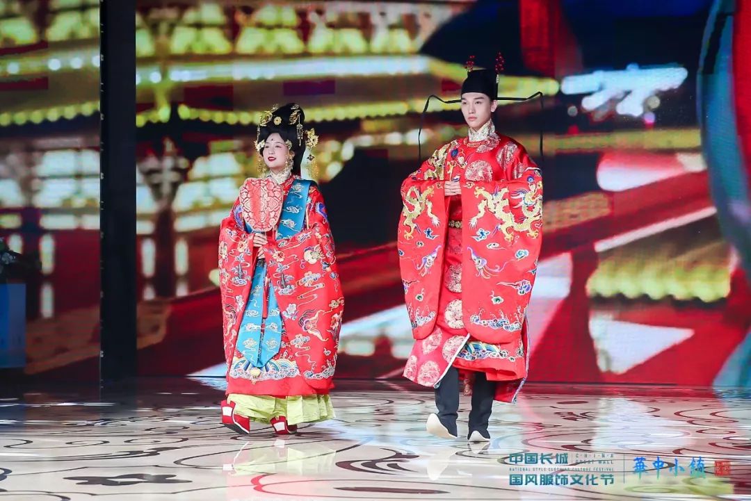 原创国风品牌花木深以非遗苏绣、手工钉珠绣为特色,将传统汉服、旗袍形制,中式纹样、工艺等古典元素,与现代款型相结合。红馆旗袍带来主题为“絮梦芳华——传统旗袍的风情绽放”系列作品,演绎传统旗袍的独特魅力与文化张力。长乐未央品牌,展出了周代、唐、宋、明不同历史时期的特色婚服,凤冠霞帔,十里红妆,尊礼制,传文脉。闭幕大秀由国内新汉服的代表性品牌重回汉唐带来,该品牌设计以历史传统形制为蓝本,融合现代服饰时尚元素,秉承初衷,坚持“文化复兴,衣冠先行”。