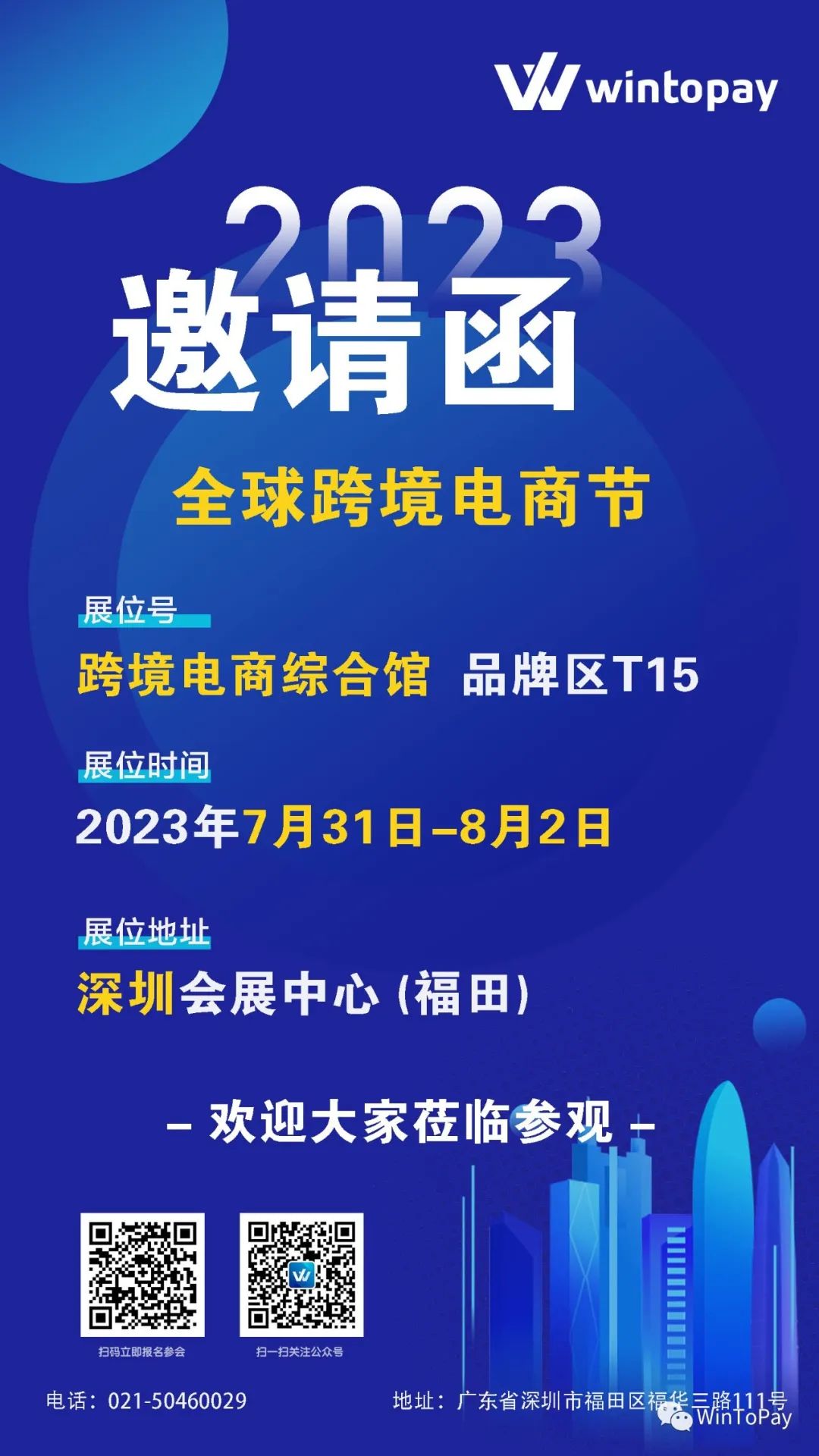 Wintopay诚挚地邀请新老商户参加即将举行的展会--第八届全球跨境电商节暨第八届深圳国际跨境电商贸易博览会,并与我们面对面的交流全球跨境独立站的收款难题!一同开启新的商机。作为行业领先的支付公司,Wintopay非常荣幸能够邀请大家参与此次展会。