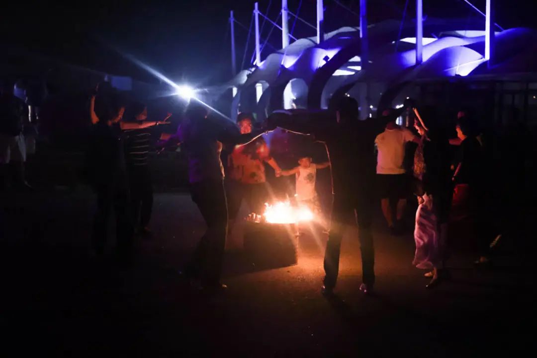 为了增加趣味性,台依湖景区还推出了“你比划我猜”等互动游戏环节,让游客在嬉戏娱乐中喜获美酒奖励。伴随着欢快的音乐,游客纷纷走出酒吧,围绕着熊熊燃起的篝火,手拉手跳起了优美的舞蹈。