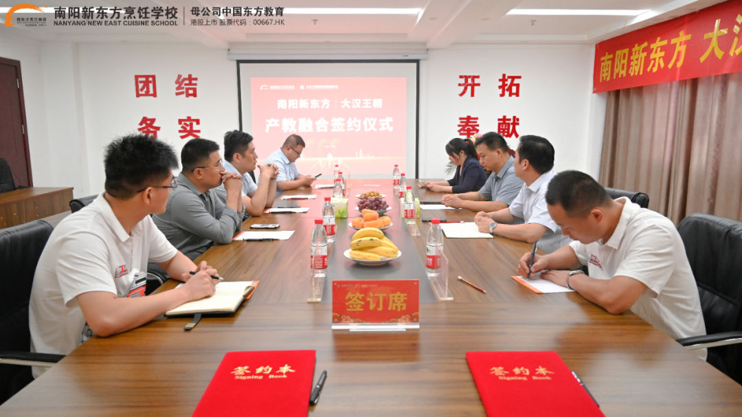 最后,在学校师生的共同见证下,高校长代表南阳新东方烹饪学校与大汉王朝餐饮管理有限公司达成了校企战略合作,双方正式签订了产教融合合作协议。这标志着用人单位与我校的合作迈上新台阶,为以后双方关系向纵深发展打下了坚实基础。
