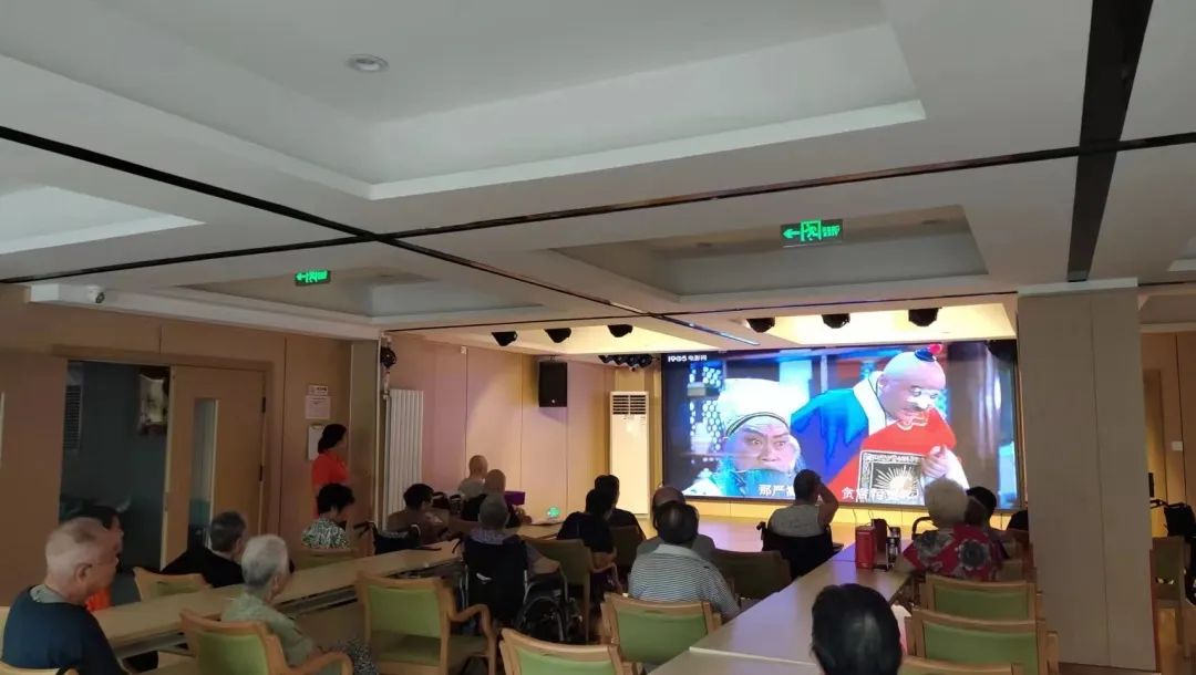 7月16日,社工为长者播放豫剧电影《抬花轿》,紧张刺激的情节和幽默滑稽的剧情让长者们全神贯注的观看,丰富了长者的日常文娱生活。