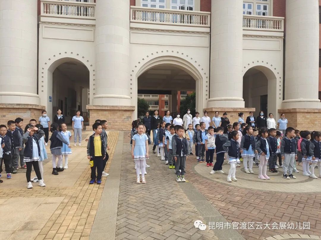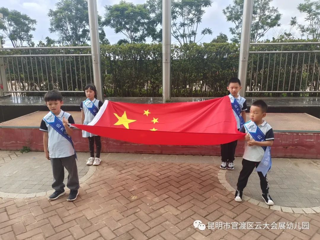 当国歌声响彻幼儿园,全园师生面向国旗,行注目礼,鲜艳的五星红旗在晨风中冉冉升起,孩子们仰望着飘扬的国旗,脸庞上洋溢出自豪与神圣的神情。