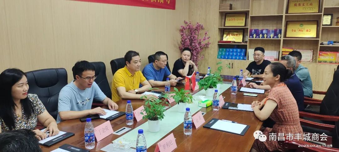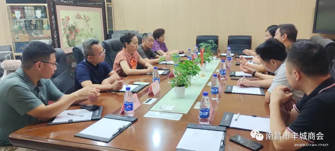2023年7月24日下午,丰城市政协领导一行莅临南昌市丰城商会指导工作,与商会会员们进行了深入交流和探讨。