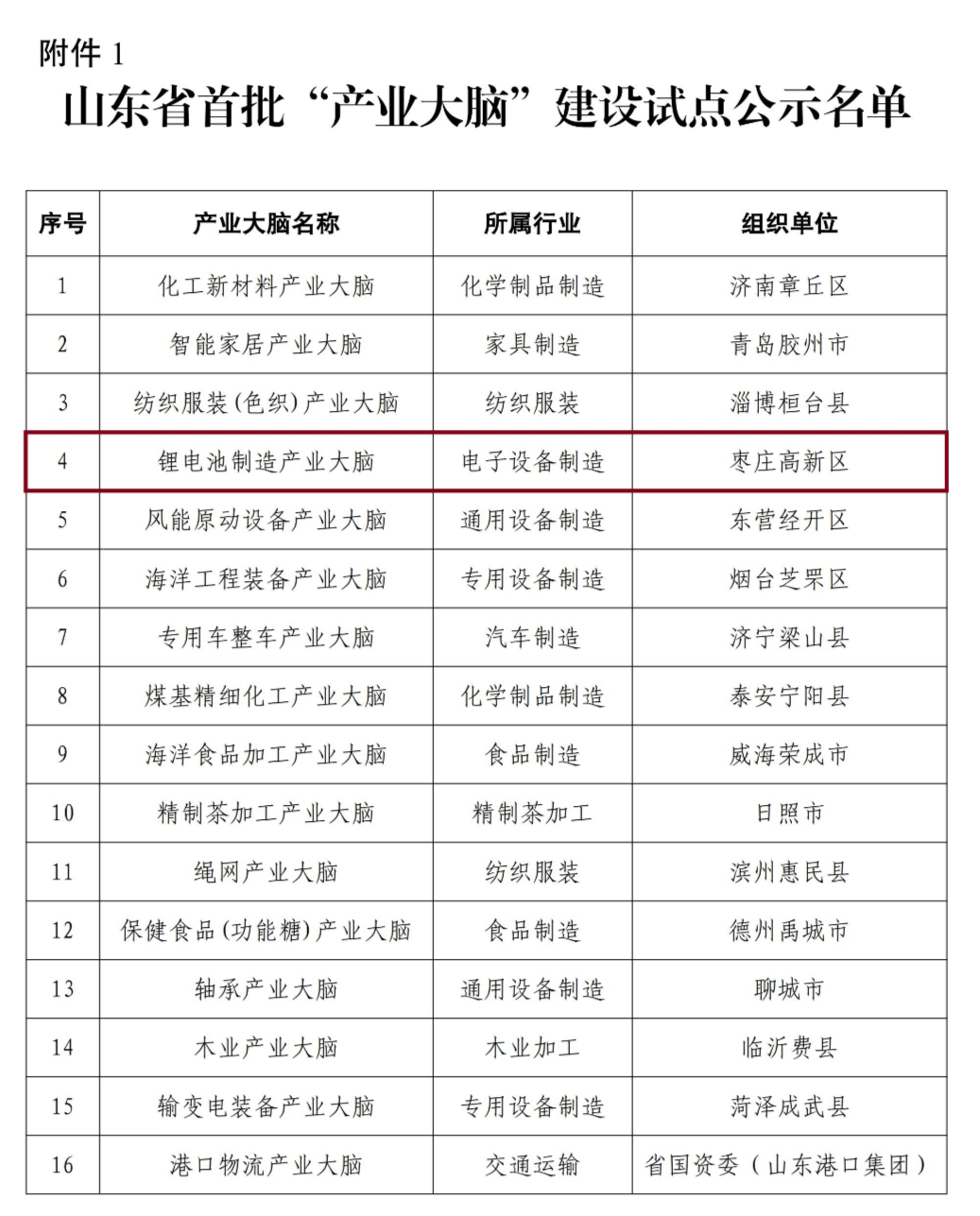 近日,山东省数字经济联席会议办公室发布了山东省首批“产业大脑”建设试点和入库培育公示名单。我区锂电池制造产业大脑入选山东省首批“产业大脑”建设试点。山东省首批“产业大脑”主要围绕新一代信息技术、高端装备、纺织服装、交通运输等重点行业,评选认定一批产业规模和经济效益突出、数据资源体系完善、自主创新能力较强的试点和项目。山东省首批“产业大脑”揭榜挂帅工作旨在加快推动我省产业数字化转型升级,以数据驱动产业集群实现绿色低碳高质量发展,为全国“数据驱动+数字赋能”工业转型升级探路。山东省数字经济发展联席会议办公室关于山东省首批“产业大脑”建设试点和入库培育名单的公示