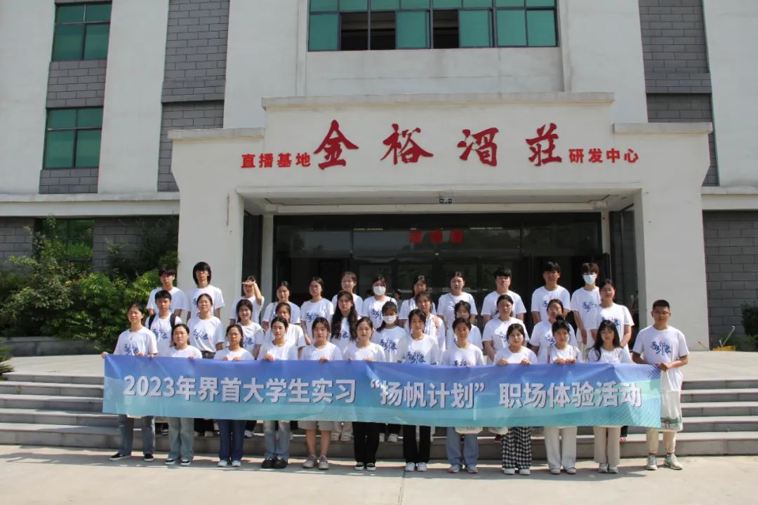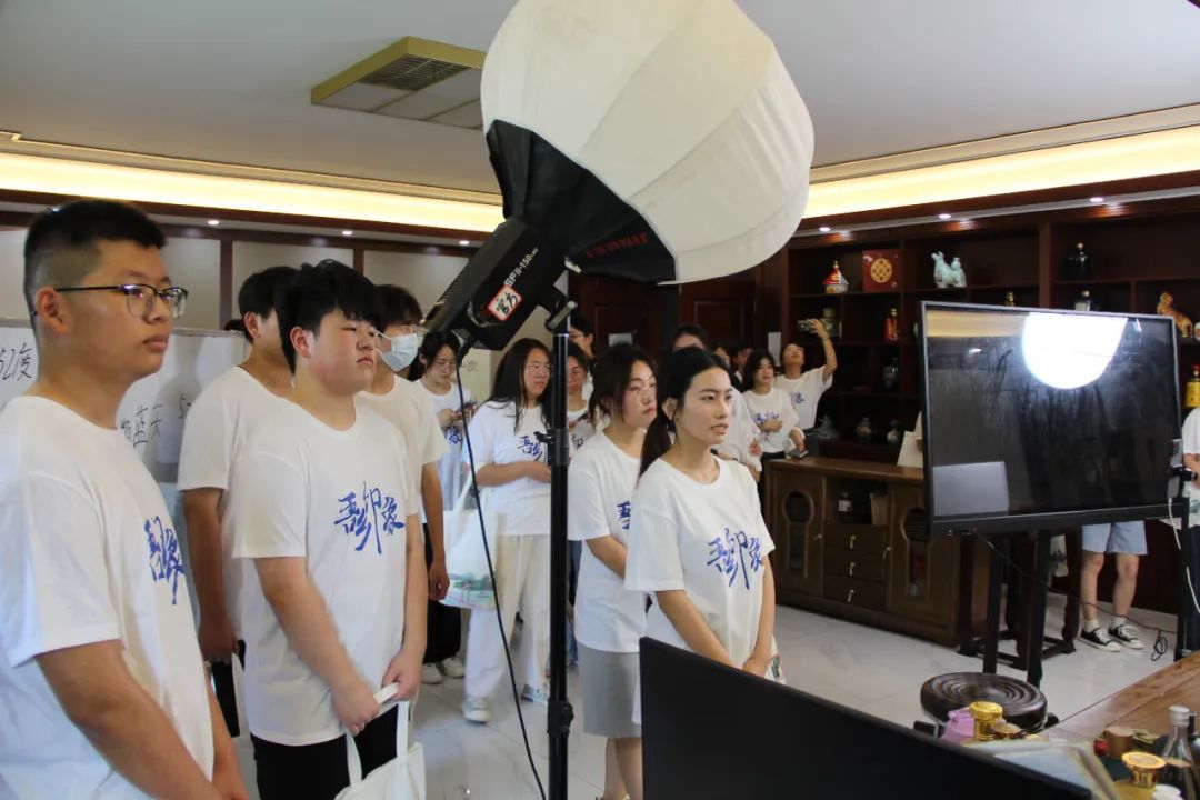 7月24日,由中共界首市组织部、共青团界首团委等部门联合组织的,吾乡·印象2023界首市暑期“返家乡”社会实践大学生看界首社会实践活动,第一期成员40余人走进金裕皖酒业,感受老字号工匠精神、体验非遗文化的魅力、观看新媒体直播带货基地。公司党支部书记张伟、总经理刘国俊等人热情接待了返乡学子们的到来。