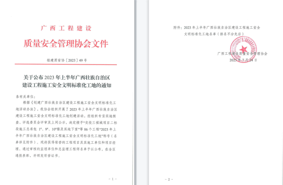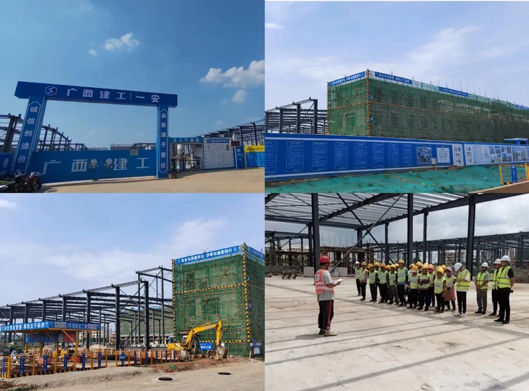 广西中国—东盟青年产业园铜材加工区标准厂房项目位于崇左市扶绥县广西中国—东盟青年产业园内,拟建总建筑面积33069.34㎡,分为铜基材厂房、办公楼及食堂等几个分部工程。该项目开工以来严抓各项管控,以高标准、高质量规范施工现场管理,保持项目建设的良好态势。建设中,项目团队始终坚持安全发展理念,以开工必优的决心,不断提高安全文明施工管理水平,严格按照集团公司《文明施工与安全管理标准化图集》指导,安全生产、文明施工管理贯穿施工全过程,强化施工过程控制,严格标准化管理,常态化抓好项目工地安全文明标准化工作。