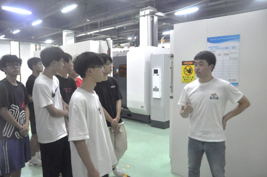 在企业相关负责人的讲解中,实践团对模具的设计制造、生产流程和应用场景有了更为深刻的了解。实践团实地观摩了不同模具从原材料到成品模具的加工流程,首次接触了ECM(电化学加工)、EDM(电火花加工)工艺的相关知识。同时,实践团成员就现场从事生产的机床提出了许多相关问题,大家对五轴联动机床的创新性、智能性感到惊叹,也在此过程中认识到高端精密机床研发及制造技术受制于人的现实痛点,为同学们的未来发展规划上了宝贵的一课。