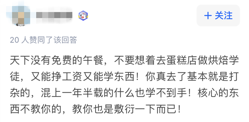 有的干了几个月杂活,才开始抹蛋糕胚,央求师傅教点干货,只会被以“空闲下来再说”搪塞。