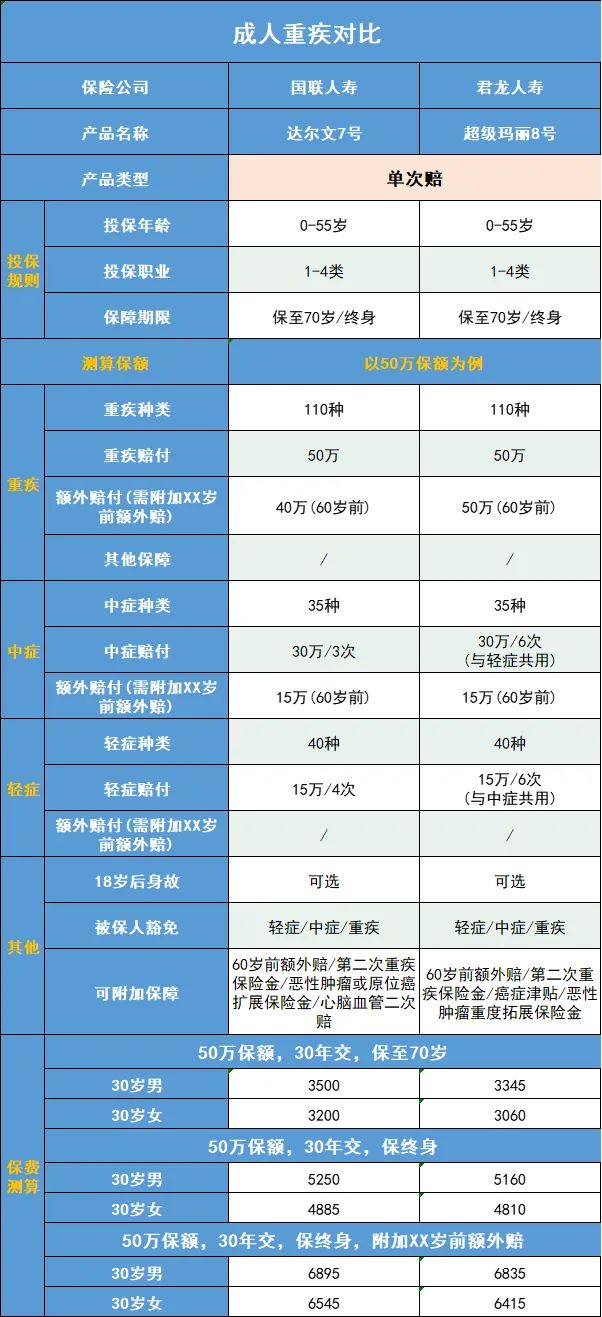 重疾险也是在涨价的行列,涨价意味着杠杆降低,来看看目前在售的重疾对比