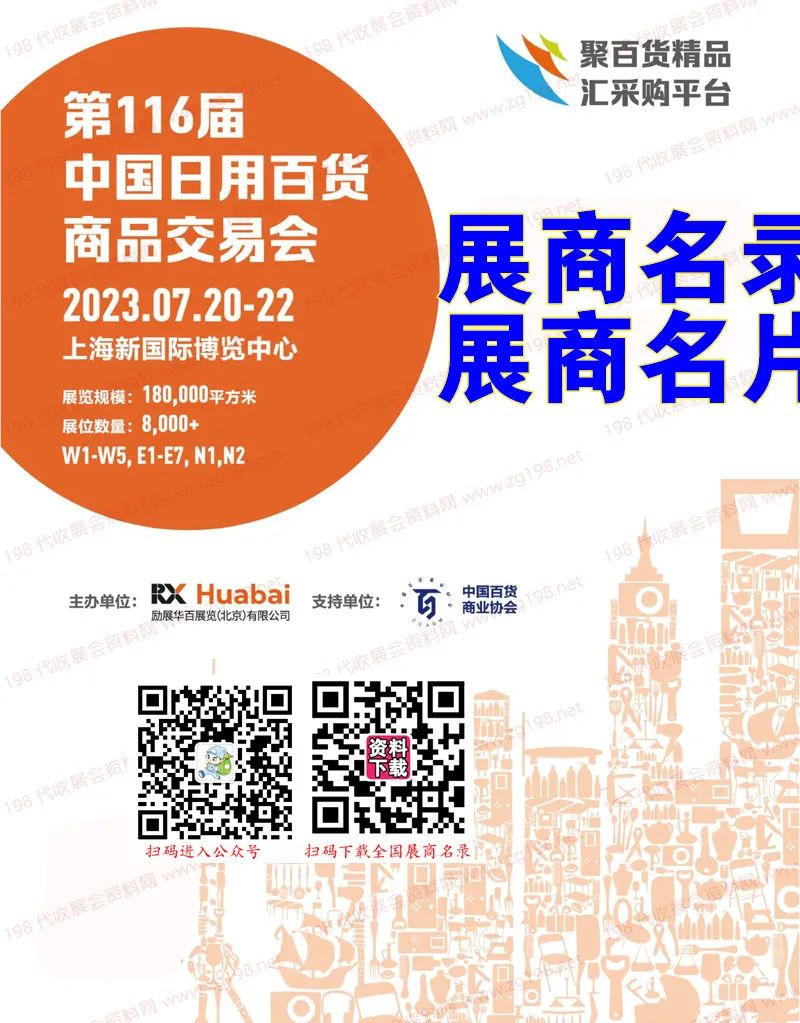 2023上海第116届中国日用百货商品交易会展商名片、展商名录会刊,含参展展商企业联系方式等,是你寻找项目、产品与厂商货源的最佳帮手。不用再东奔西跑,你坐在家中也能寻找好的产品与项目!如果说你需要此资料,可以联系客服在线下载。